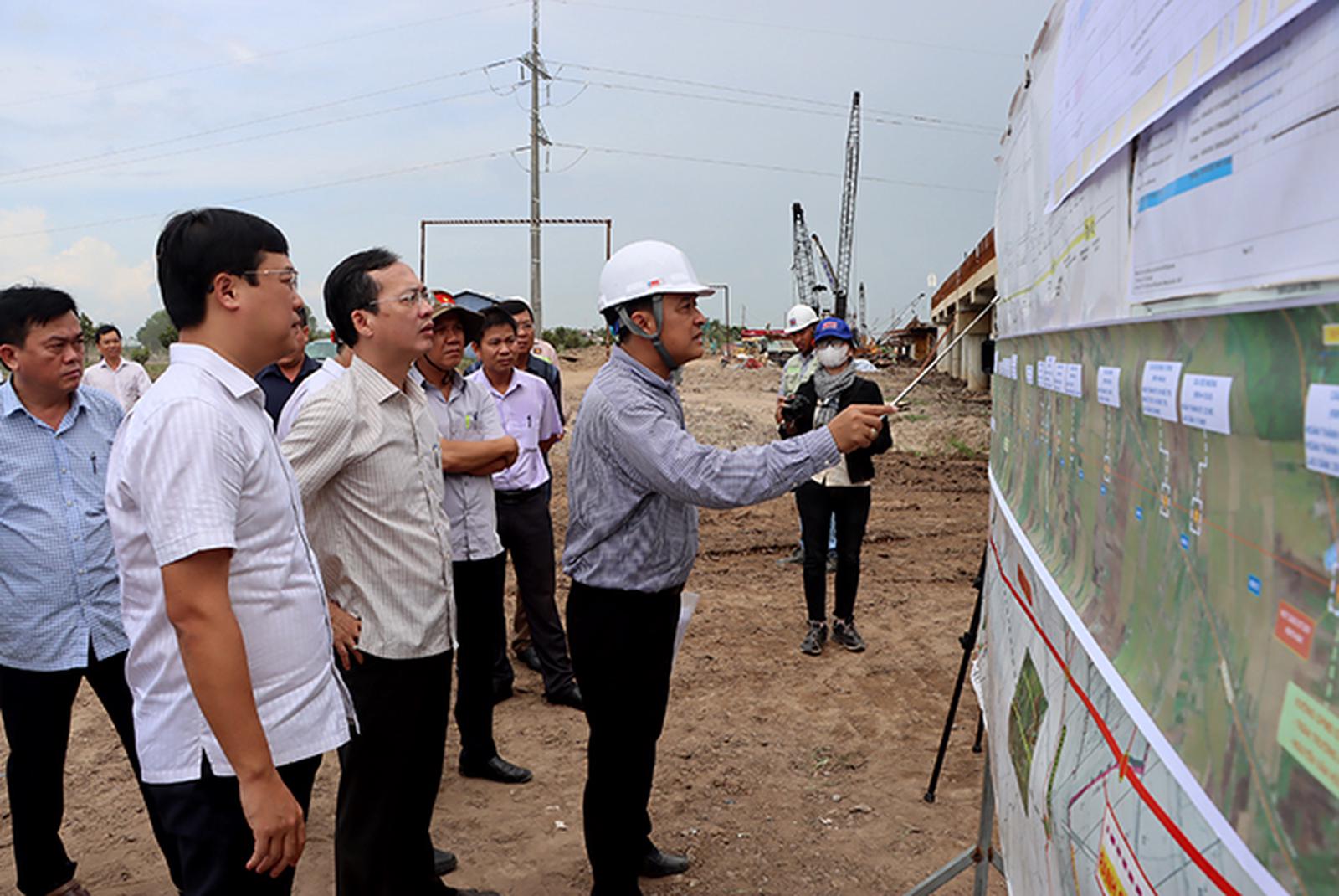 Lãnh đạo UBND tỉnh Đồng Tháp kiểm tra tiến độ thi công Dự án cao tốc Cao Lãnh – An Hữu. Ảnh: Nguyệt Ánh