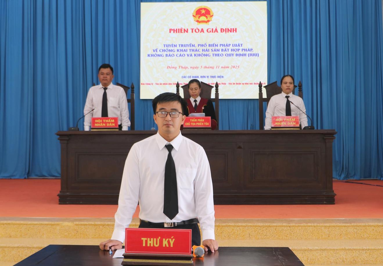 Tổ chức các phiên tòa giả định là 1 trong các hình thức tuyên truyền về chống IUU mà Đồng Tháp đã triển khai. Ảnh: CL