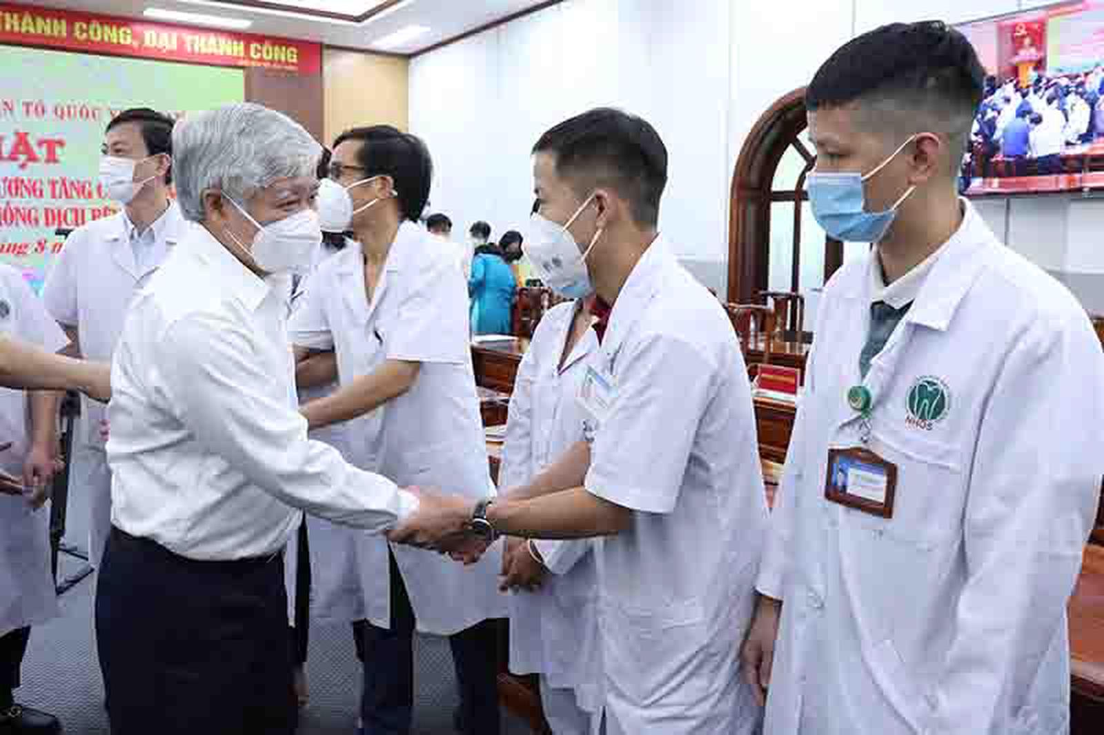 Chia sẻ với đại diện các y, bác sĩ tại buổi gặp mặt, Chủ tịch Trung ương MTTQ Việt Nam Đỗ Văn Chiến cho biết, phía sau gần 3.000 y, bác sĩ chuẩn bị lên đường nhận nhiệm vụ lần này là cha mẹ già yếu, vợ, chồng, con và những người thân trong gia đình đang phải cách ly, giãn cách xã hội với không ít khó khăn trong đời sống.