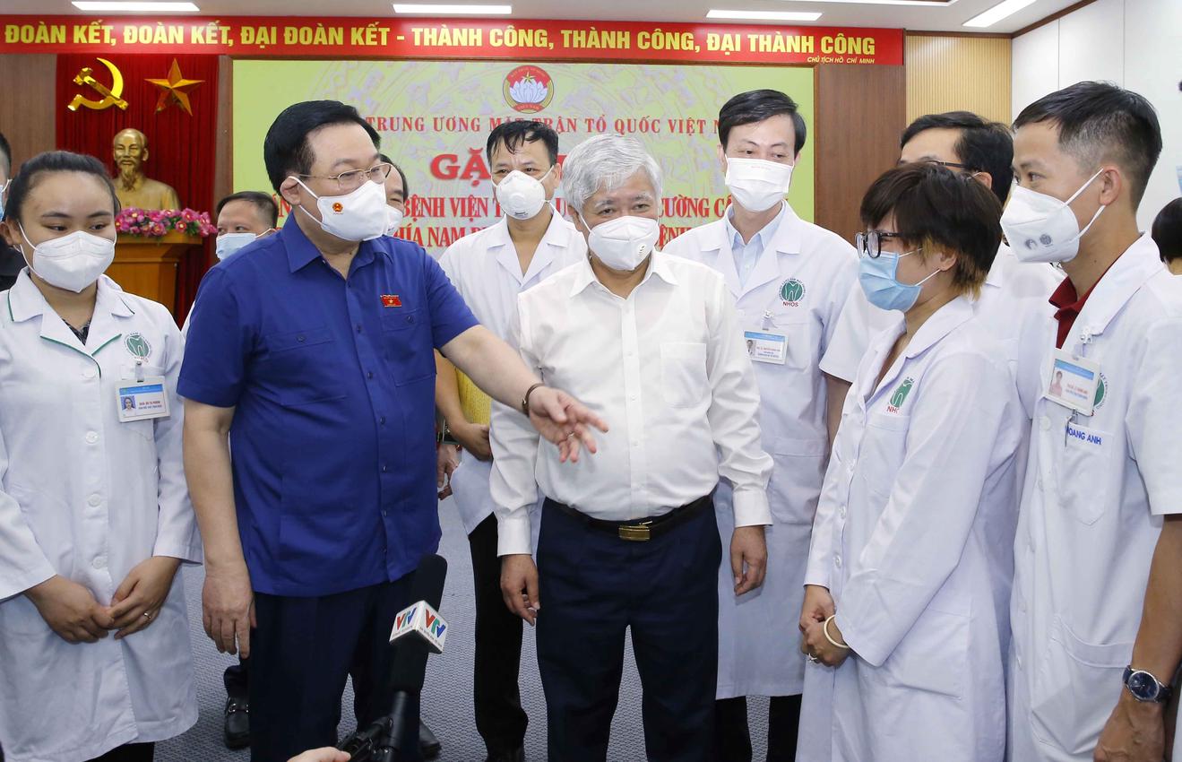 “Ủy ban Thường vụ Quốc hội đang gấp rút thẩm định để Chính phủ có thể quyết đáp được ngay”, Chủ tịch Quốc hội nói; đồng thời đặc biệt yêu cầu Bộ trưởng Bộ Y tế tiếp tục đề xuất để có bổ sung các chế độ chính sách đối với lực lượng y tế tuyến đầu.