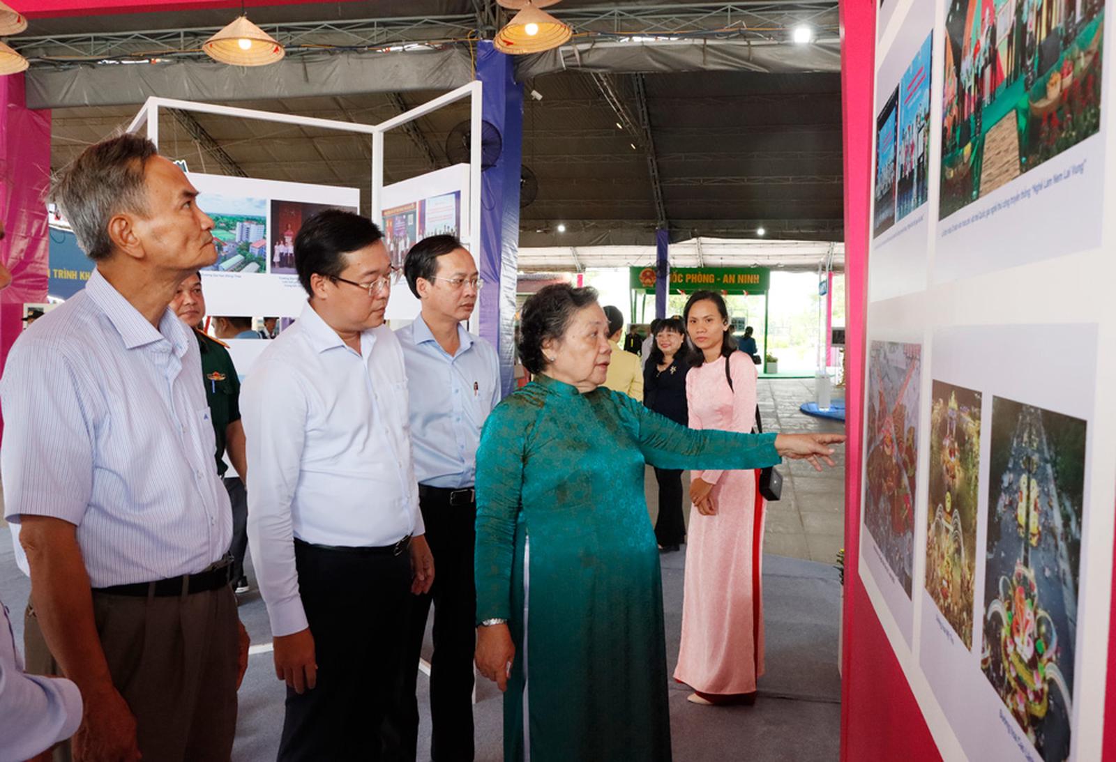 Trưng bày tôn vinh, giới thiệu thành tựu nổi bật là một trong nhiều hoạt động hướng đến Đại hội Thi đua yêu nước tỉnh Đồng Tháp. Trong ảnh là đồng chí Nguyễn Trọng Nghĩa - Ủy viên Bộ Chính trị, Bí thư Trung ương Đảng, Trưởng Ban Tuyên giáo và Dân vận Trung ương thăm các gian trưng bày trước thềm Đại hội đại biểu Đảng bộ tỉnh Đồng Tháp. Ảnh: ĐQ