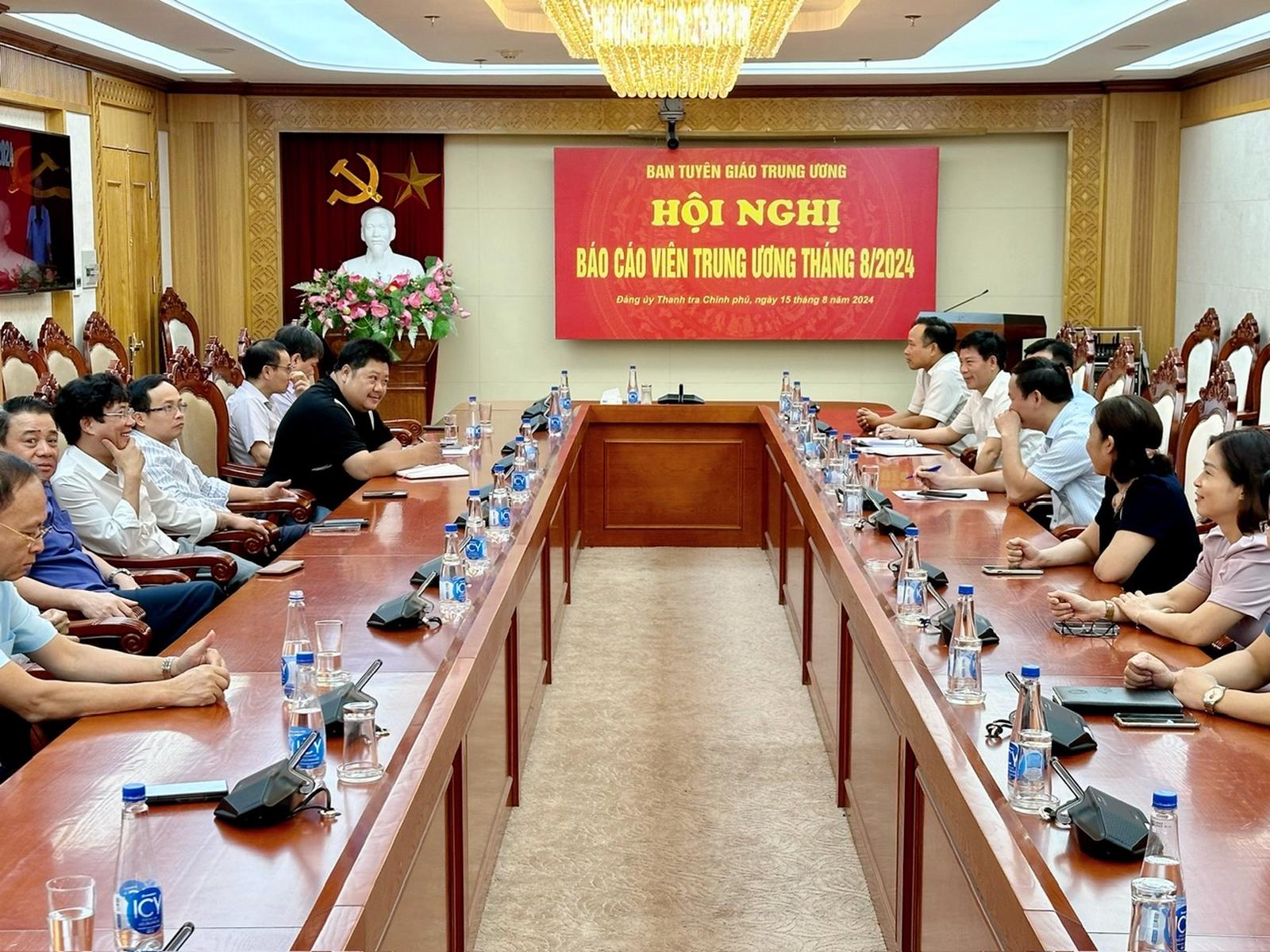 (Thanh tra)- Sáng ngày 15/8, tại Hà Nội, Ban Tuyên giáo Trung ương tổ chức Hội nghị Báo cáo viên Trung ương tháng 8/2024. Đồng chí Phan Xuân Thuỷ, Phó Trưởng Ban Tuyên giáo Trung ương chủ trì hội nghị.