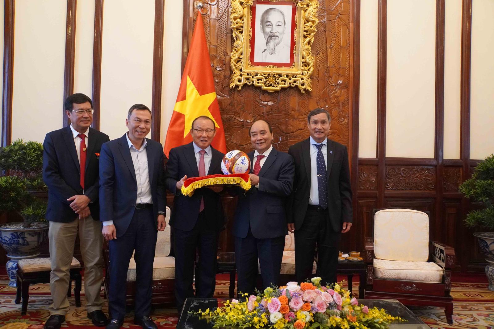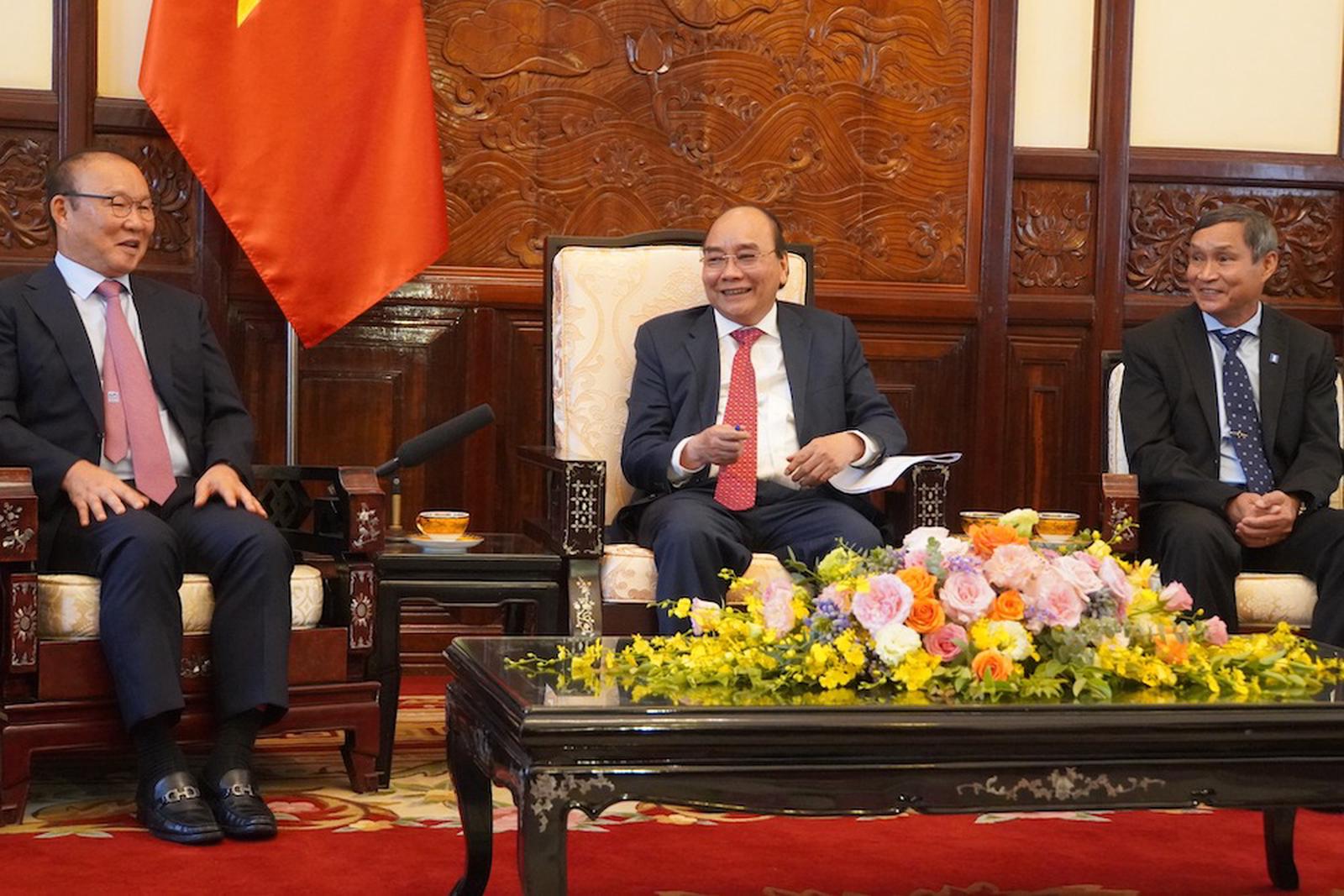 Tại buổi gặp, HLV Park Hang-seo bày tỏ sự cảm ơn trân trọng đến Chủ tịch Nguyễn Xuân Phúc khi đã dành nhiều tình cảm, sự quan tâm đến đội tuyển bóng đá nam Việt Nam.