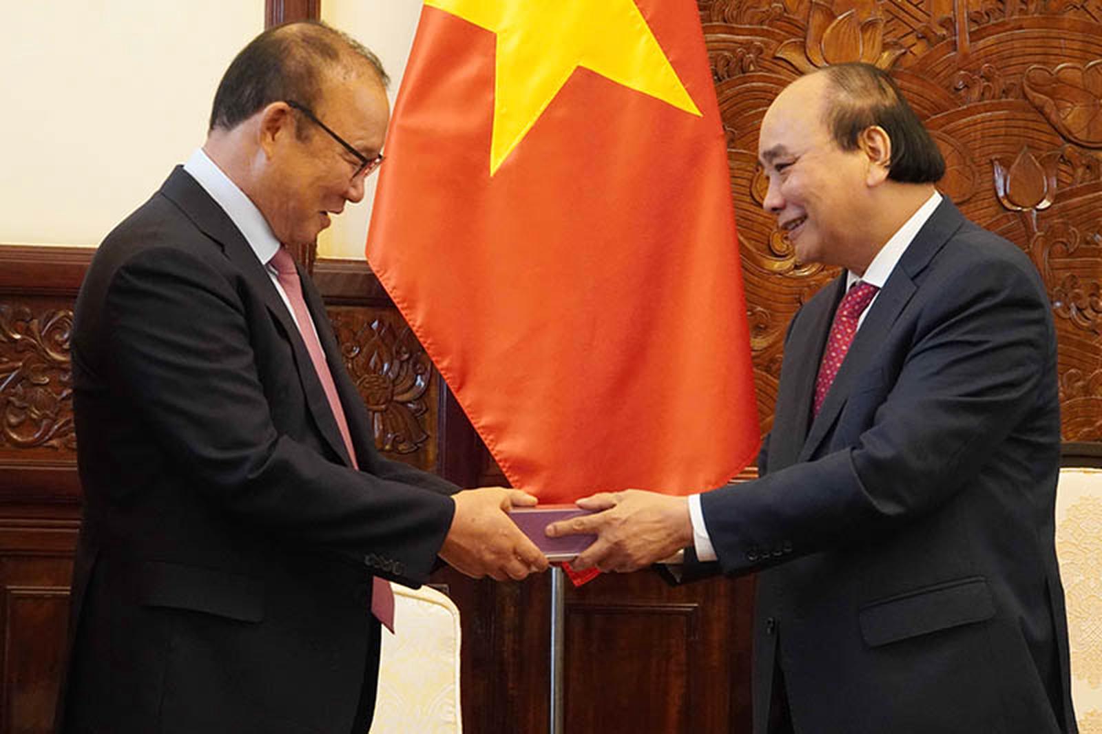 Riêng với HLV Park Hang-seo, Chủ tịch nước Nguyễn Xuân Phúc đánh giá sự cống hiến của HLV còn đóng góp vào quan hệ hữu nghị đối tác chiến lược toàn diện Việt Nam - Hàn Quốc.
