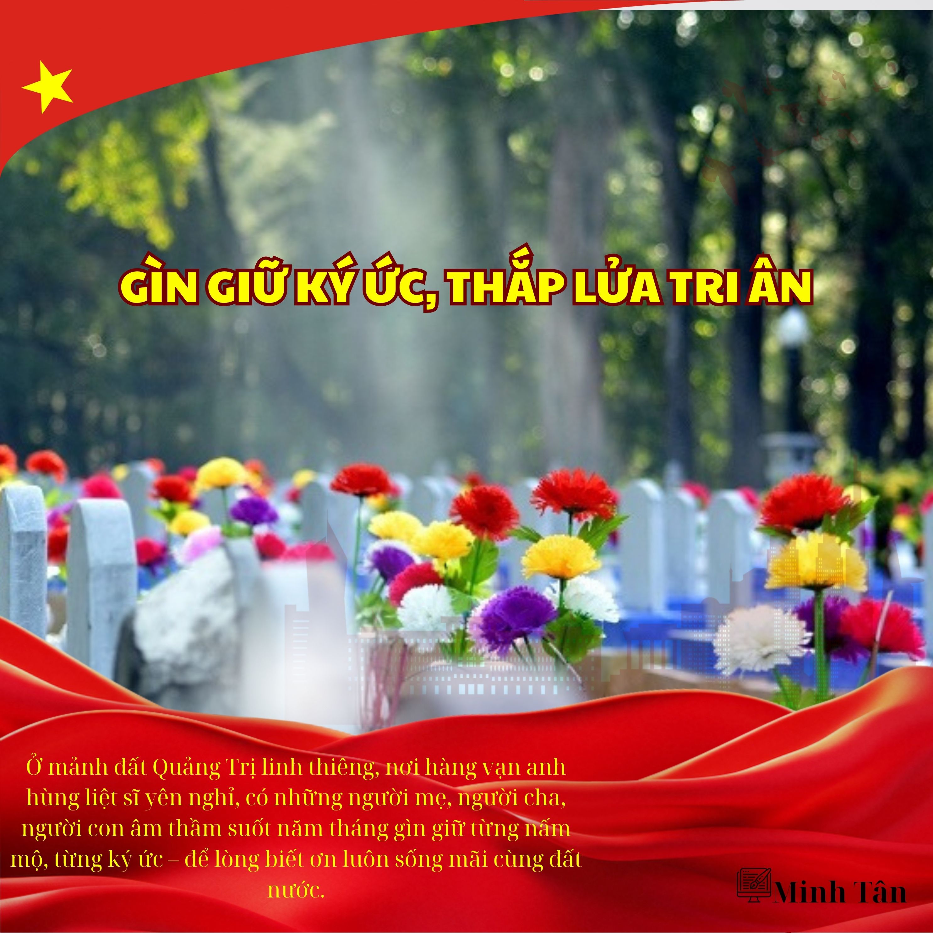 Tỉnh Quảng Trị, với 72 nghĩa trang liệt sĩ, trong đó có hai nghĩa trang quốc gia, đã trở thành một không gian linh thiêng, nơi những ký ức về các anh hùng không bao giờ phai nhòa. Trong suốt nhiều năm qua, Đảng bộ, chính quyền và Nhân dân Quảng Trị đã không ngừng duy trì và phát huy truyền thống "Uống nước nhớ nguồn", với những chính sách đền ơn đáp nghĩa thiết thực. Tình cảm tri ân không chỉ là trách nhiệm, mà là nghĩa vụ thiêng liêng của những người con đất Việt. Và trong dòng chảy ấm áp của tình nghĩa ấy, có những gia đình, hai thế hệ nối tiếp nhau làm công việc gìn giữ các phần mộ liệt sĩ, như những lời tri ân nhỏ bé nhưng sâu nặng, khiến ký ức về các anh hùng liệt sĩ luôn sống mãi trong lòng mỗi người dân đất Việt và bạn bè quốc tế.
