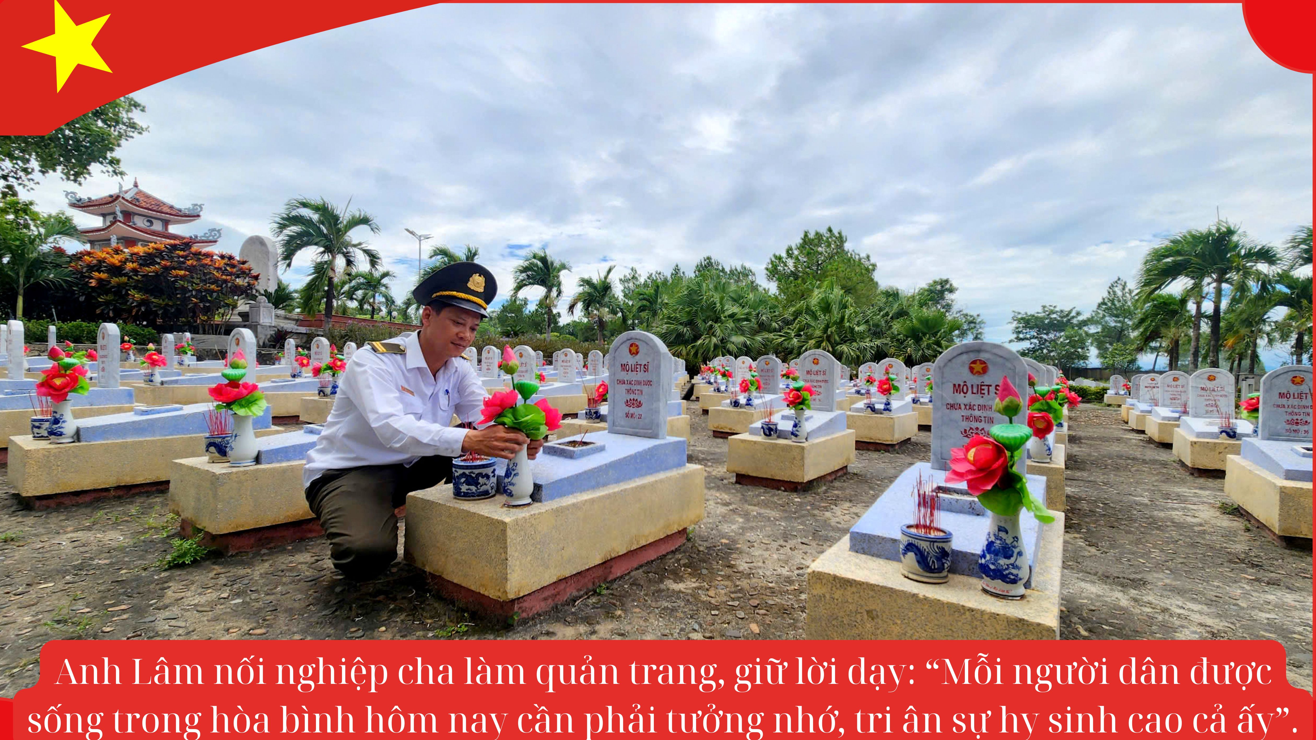 “Nhà tôi có 3 anh em nhưng chỉ có tôi nối nghiệp cha. Mặc dù cha đã mất (năm 2020) nhưng tôi luôn khắc ghi những lời cha dạy rằng các anh hùng liệt sĩ đã hy sinh xương máu để giành độc lập, tự do cho dân tộc. Mỗi người dân được sống trong hòa bình hôm nay cần phải tưởng nhớ, tri ân sự hy sinh cao cả ấy. Vì vậy, tôi luôn nỗ lực để làm tốt nhiệm vụ một người quản trang”, anh Lâm tâm sự.