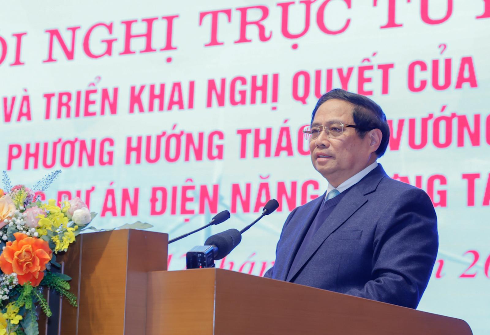 Nhắc lại những điểm sáng, bài học kinh nghiệm trong phát triển điện, như việc triển khai thần tốc đường dây 500 kV mạch 3, Thủ tướng cũng chỉ ra việc phát triển năng lượng điện mặt trời, điện gió triển khai nhanh, có tích cực nhưng cũng có khó khăn, vướng mắc, có cả sai phạm.