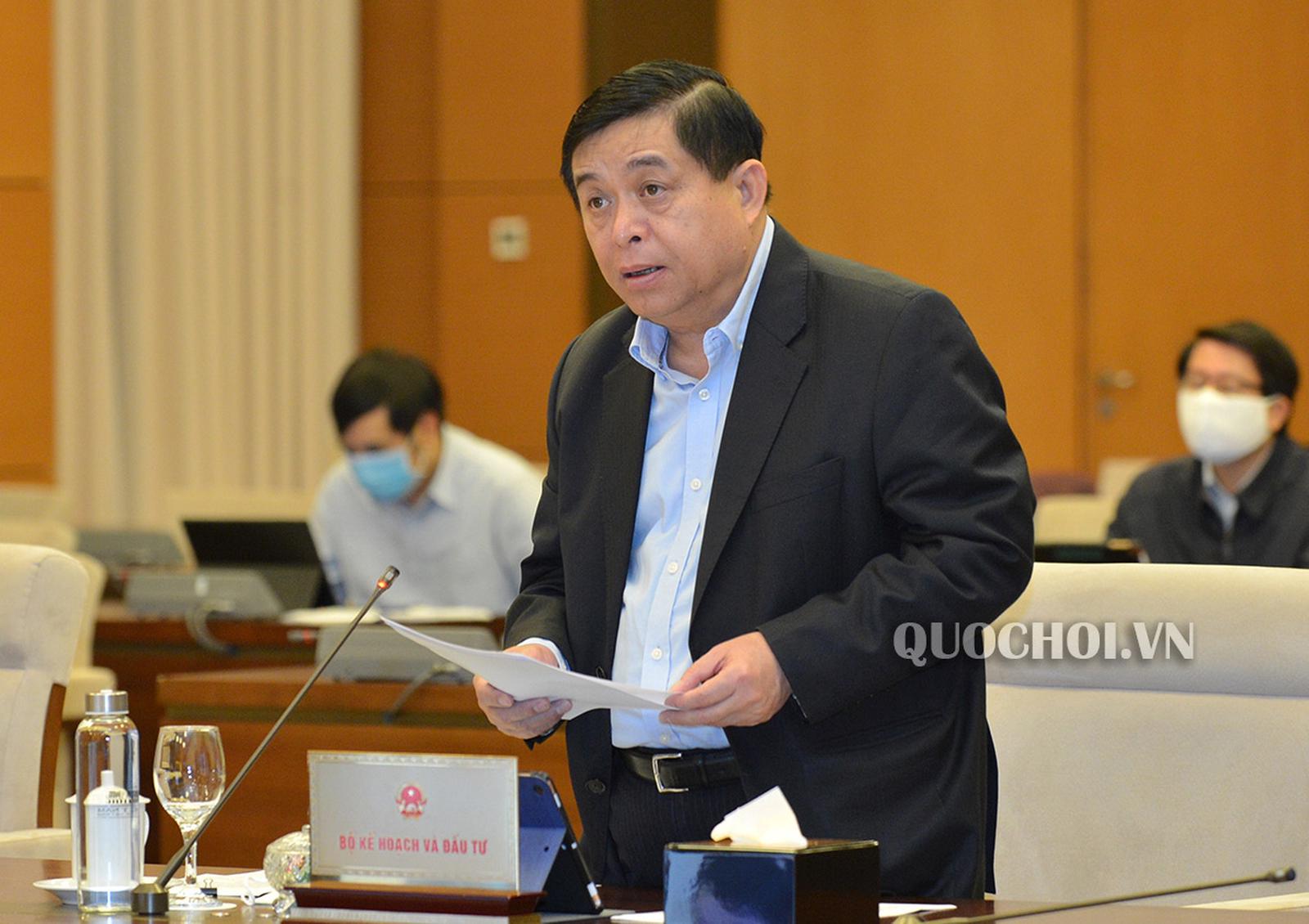 Bộ trưởng Kế hoạch Đầu tư Nguyễn Chí Dũng trình bày báo cáo của Chính phủ. Ảnh: Quochoi.vn