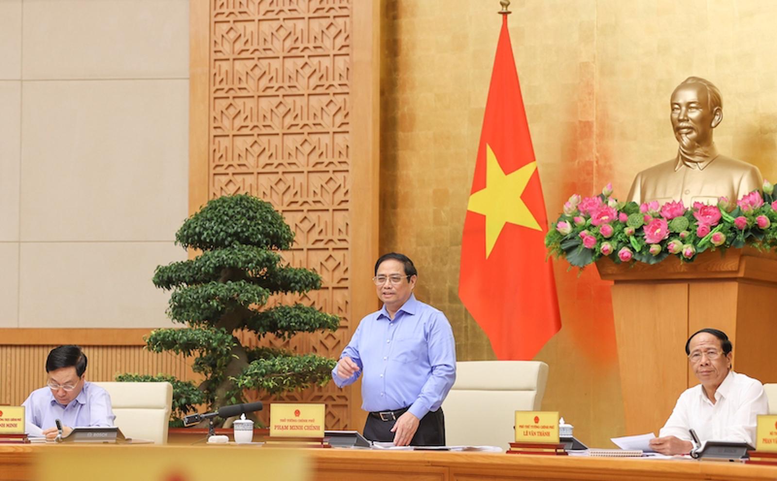 Thủ tướng Phạm Minh Chính phát biểu kết luận phiên họp Chính phủ thường kỳ tháng 8 năm 2022. Ảnh: N.Bắc
