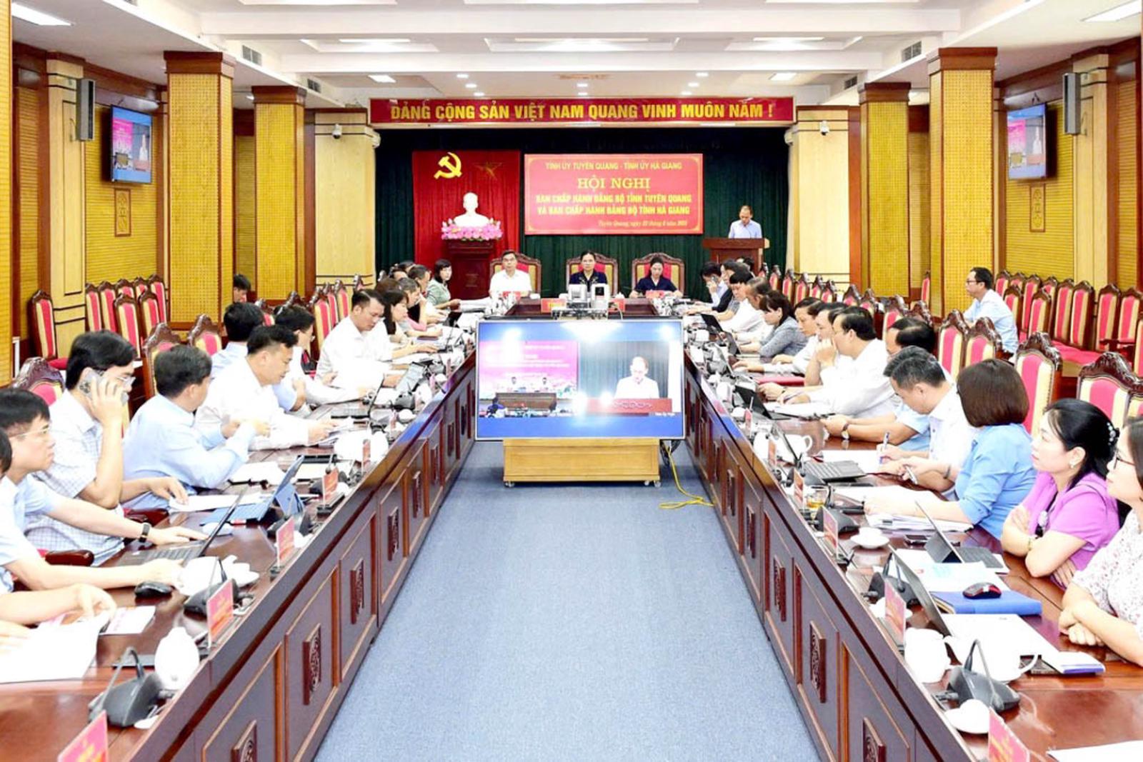 Hội nghị do ông Hầu A Lềnh, Bí thư Tỉnh ủy Hà Giang và bà Hà Thị Nga, Bí thư Tỉnh ủy Tuyên Quang đồng chủ trì tại hai điểm cầu. Tham dự hội nghị còn có các đồng chí Thường trực Tỉnh ủy, Ủy viên Ban Thường vụ Tỉnh ủy, BCH Đảng bộ hai tỉnh, cùng đại diện các Ban Đảng Trung ương.