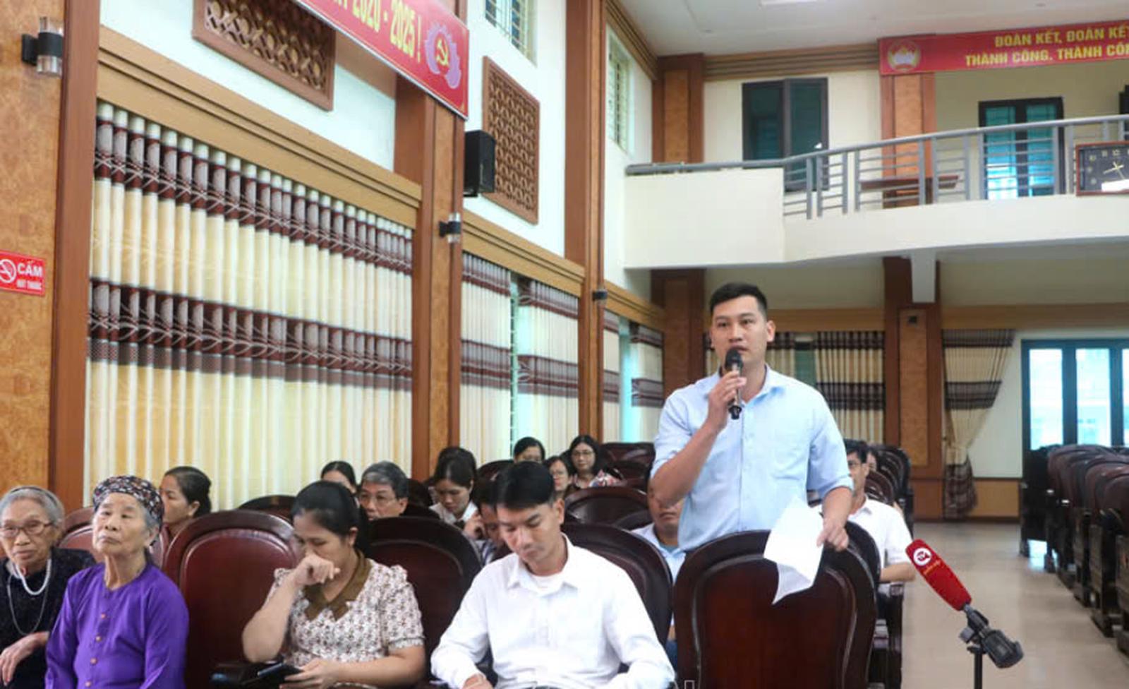 Cử tri xã Tượng Lĩnh nêu phản ánh, kiến nghị với ĐBQH tỉnh Hà Nam. Ảnh: Thu Thảo