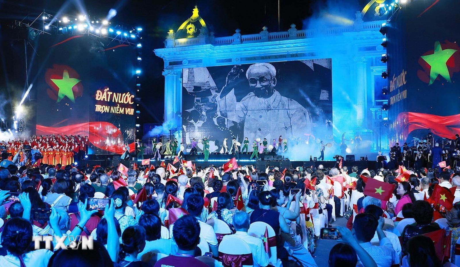 Điểm nhấn của sự kiện là ba màn trình chiếu 3D mapping và pháo hoa nghệ thuật, hòa quyện âm nhạc, ánh sáng, công nghệ, đưa người xem vào “hành trình ánh sáng xuyên thời gian”, từ dấu mốc lịch sử hào hùng, qua không gian văn hóa rực rỡ của Thăng Long - Hà Nội, tới hình ảnh Thủ đô sáng tạo, hiện đại trong kỷ nguyên mới.
