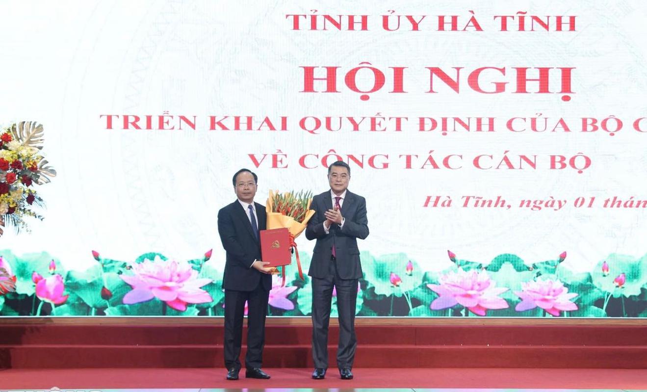 Trưởng Ban Tổ chức Trung ương Lê Minh Hưng trao quyết định cho tân Bí thư Hà Tĩnh. Ảnh: HV