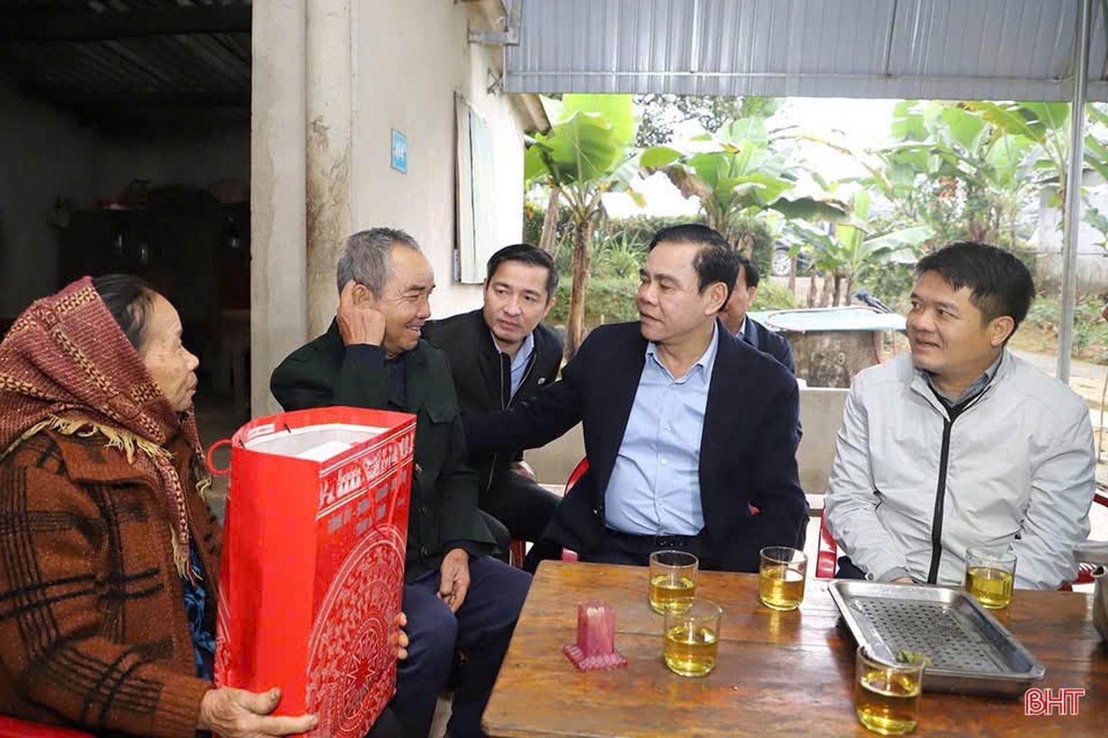 Bí thư Tỉnh ủy Hoàng Trung Dũng trao quà tại cho người dân biên giới Hương Khê. Ảnh: BHT