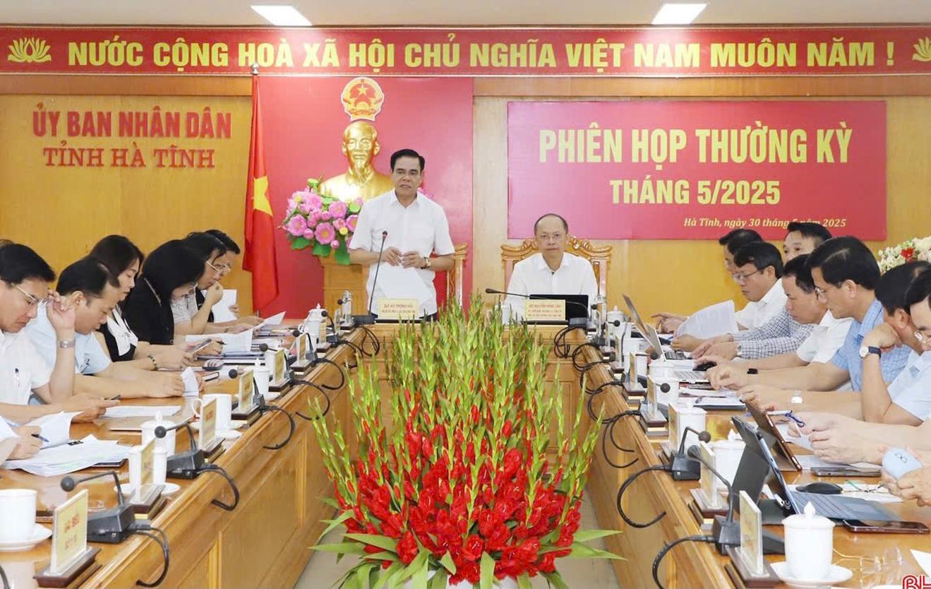 UBND tỉnh Hà Tĩnh họp thường kỳ tháng 5. Ảnh: NL