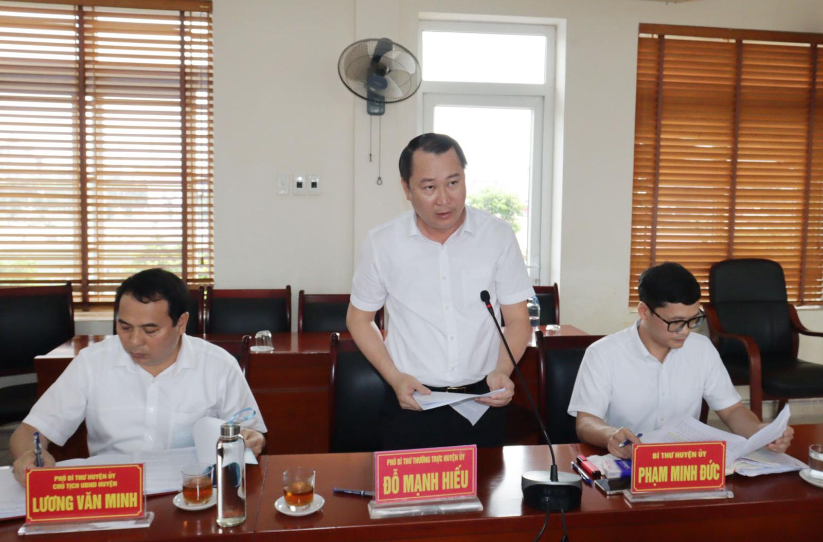 Phó Bí thư Thường trực Thành ủy Đỗ Mạnh Hiến phát biểu tại cuộc làm việc với Ban Thường vụ Huyện ủy Tiên Lãng. Ảnh: KT