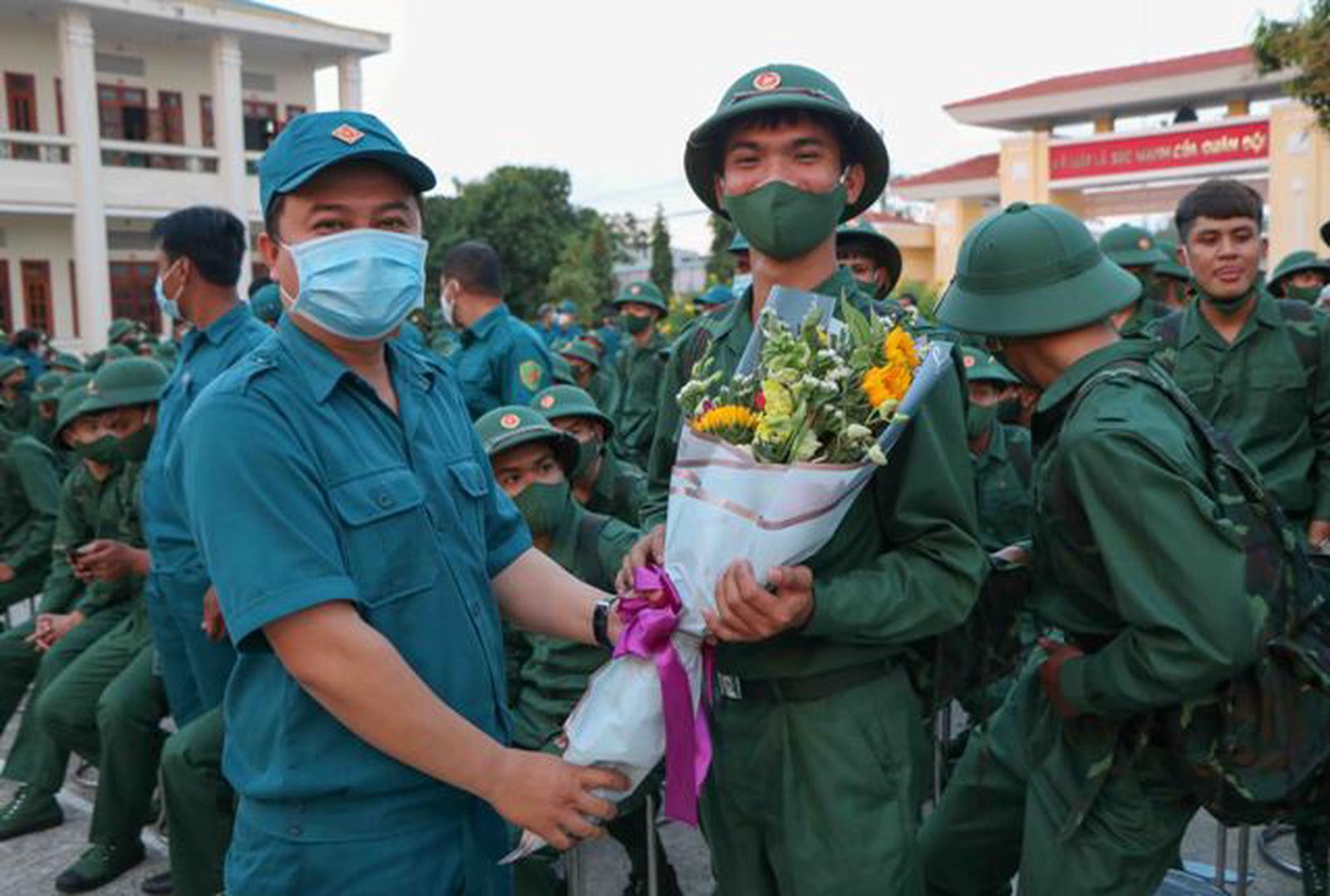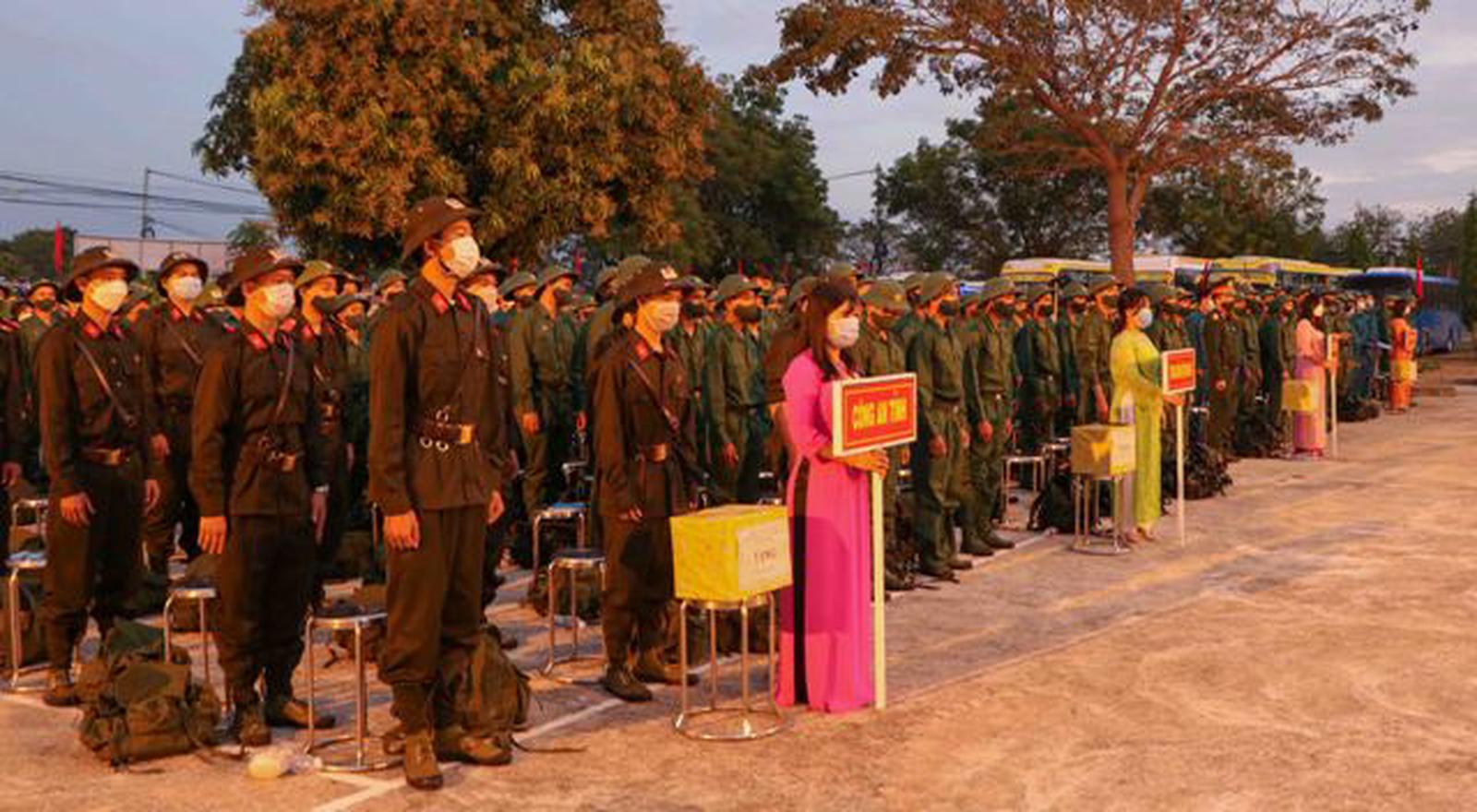 Hàng ngàn tân binh tỉnh Ninh Thuận hăng hái lên đường làm nhiệm vụ bảo vệ Tổ quốc. Ảnh: Khoa Lê