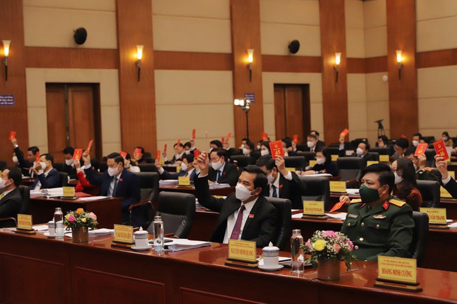 Các đị biểu biểu quyết tại Kỳ họp thứ 4, HĐND thành phố khóa VI. Ảnh: Kim Thành