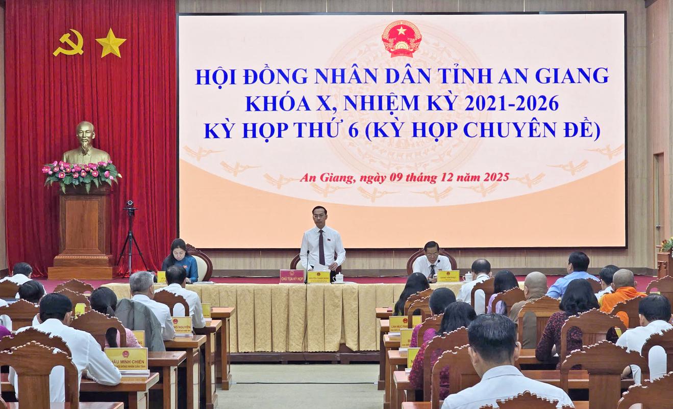 Ngày 9/12, HĐND tỉnh An Giang tổ chức Kỳ họp thứ 6 (kỳ họp chuyên đề) để xem xét, quyết định một số nội dung thuộc thẩm quyền của HĐND tỉnh.