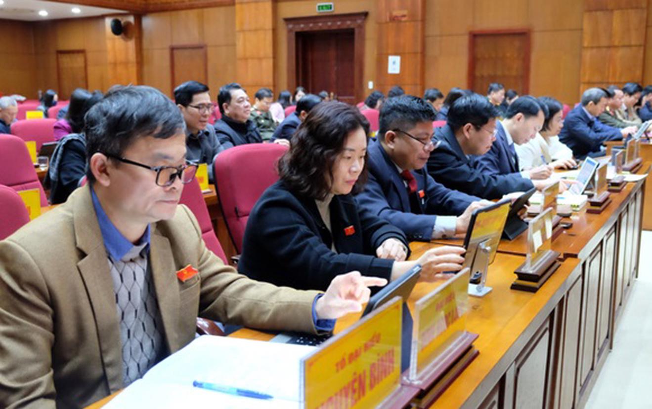 Đại biểu HĐND tỉnh biểu quyết thông qua các nghị quyết tại kỳ họp. Ảnh: BCB