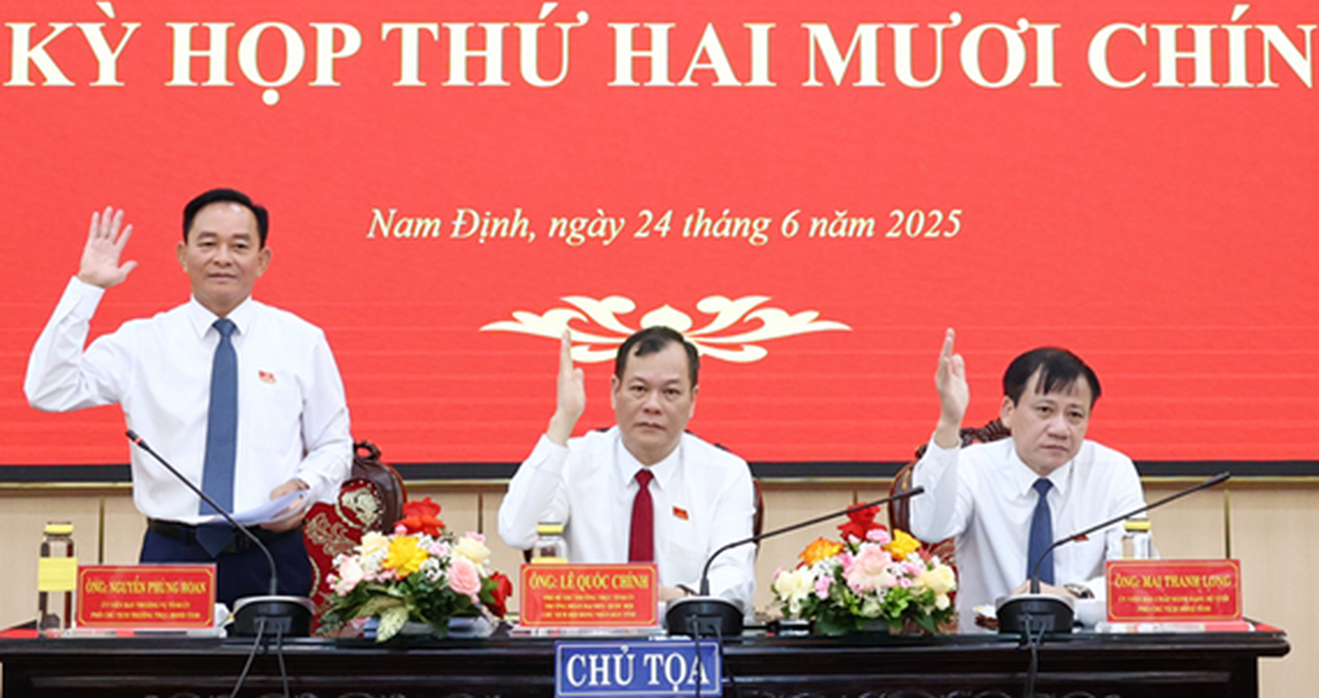 (Thanh tra) - Ngày 24/6/2025, tại Kỳ họp thứ 29 HĐND tỉnh Nam Định khóa XIX, nhiệm kỳ 2021 - 2026 đã thống nhất thông qua 11 nghị quyết thuộc các lĩnh vực quy hoạch, tài chính, nông nghiệp và môi trường.