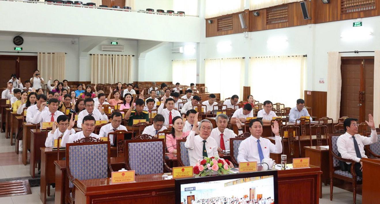 Đại biểu HĐND tỉnh biểu quyết thông qua các nghị quyết. Ảnh: ninhthuan.gov.vn