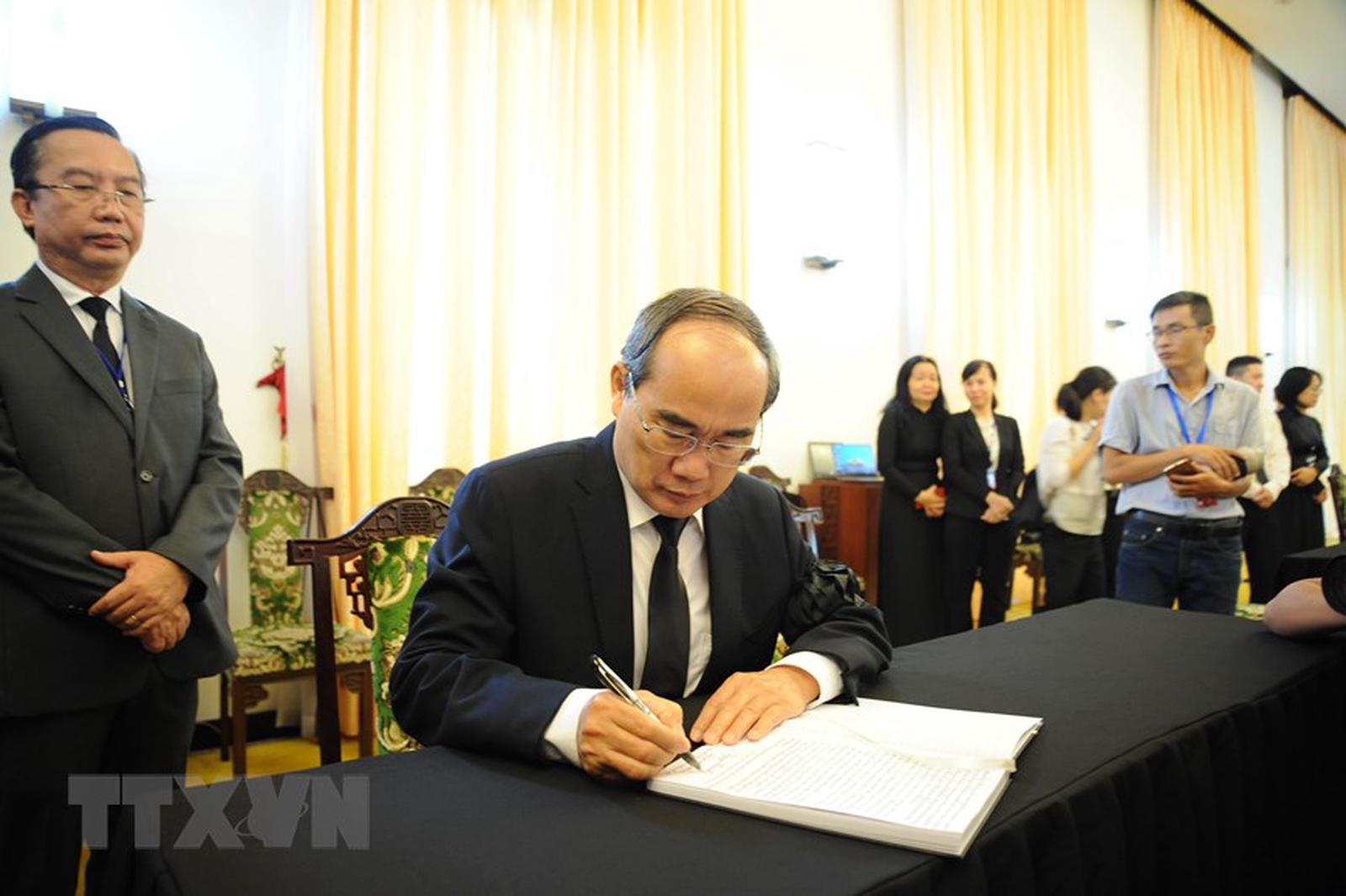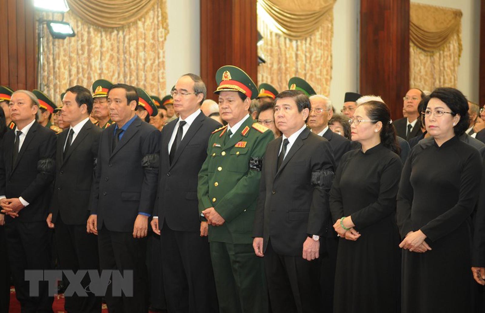 Đoàn lãnh đạo Thành ủy, Hội đồng Nhân dân, Ủy ban Nhân dân, Ủy ban Mặt trận Tổ quốc Việt Nam Thành phố Hồ Chí Minh, tại Lễ viếng. (Ảnh: Hoàng Anh Tuấn/TTXVN)Đồng chí Nguyễn Thiện Nhân, Ủy viên Bộ Chính trị, Bí thư Thành ủy Thành phố Hồ Chí Minh dẫn đầu đoàn đại biểu dâng hương viếng nguyên Chủ tịch nước, Đại tướng Lê Đức Anh. (Ảnh: Hoàng Anh Tuấn/TTXVN)Đồng chí Nguyễn Thiện Nhân, Ủy viên Bộ Chính trị, Bí thư Thành ủy Thành phố Hồ Chí Minh viết sổ tang. (Ảnh: An Hiếu/TTXVN)Các tầng lớp nhân dân, đồng bào các dân tộc, tôn giáo tham dự Lễ viếng nguyên Chủ tịch nước, Đại tướng Lê Đức Anh tại Hội trường Thống Nhất. (Nguồn: TTXVN)Người dân chuẩn bị vào viếng. (Nguồn: TTXVN)Các tầng lớp nhân dân, đồng bào các dân tộc, tôn giáo tham dự Lễ viếng nguyên Chủ tịch nước, Đại tướng Lê Đức Anh tại Hội trường Thống Nhất. (Nguồn: TTXVN)Người thân của nguyên Chủ tịch nước, Đại tướng Lê Đức Anh tham gia Lễ viếng tại Thành phố Hồ Chí Minh. (Nguồn: TTXVN)Người dân Thành phố Hồ Chí Minh đến viếng nguyên Chủ tịch nước, Đại tướng Lê Đức Anh. (Ảnh: Hoàng Anh Tuấn/TTXVN) (TTXVN/Vietnam+)