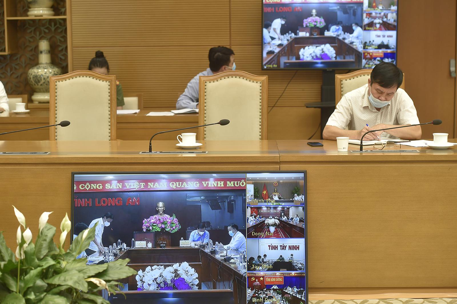 Tại cuộc họp, lãnh đạo các tỉnh Bình Dương, Đồng Nai, Long An, Tây Ninh kiến nghị, hỗ trợ trang thiết bị, nhân lực; gỡ vướng về cơ chế mua sắm máy xét nghiệm, sinh phẩm xét nghiệm phục vụ công tác phòng chống dịch.