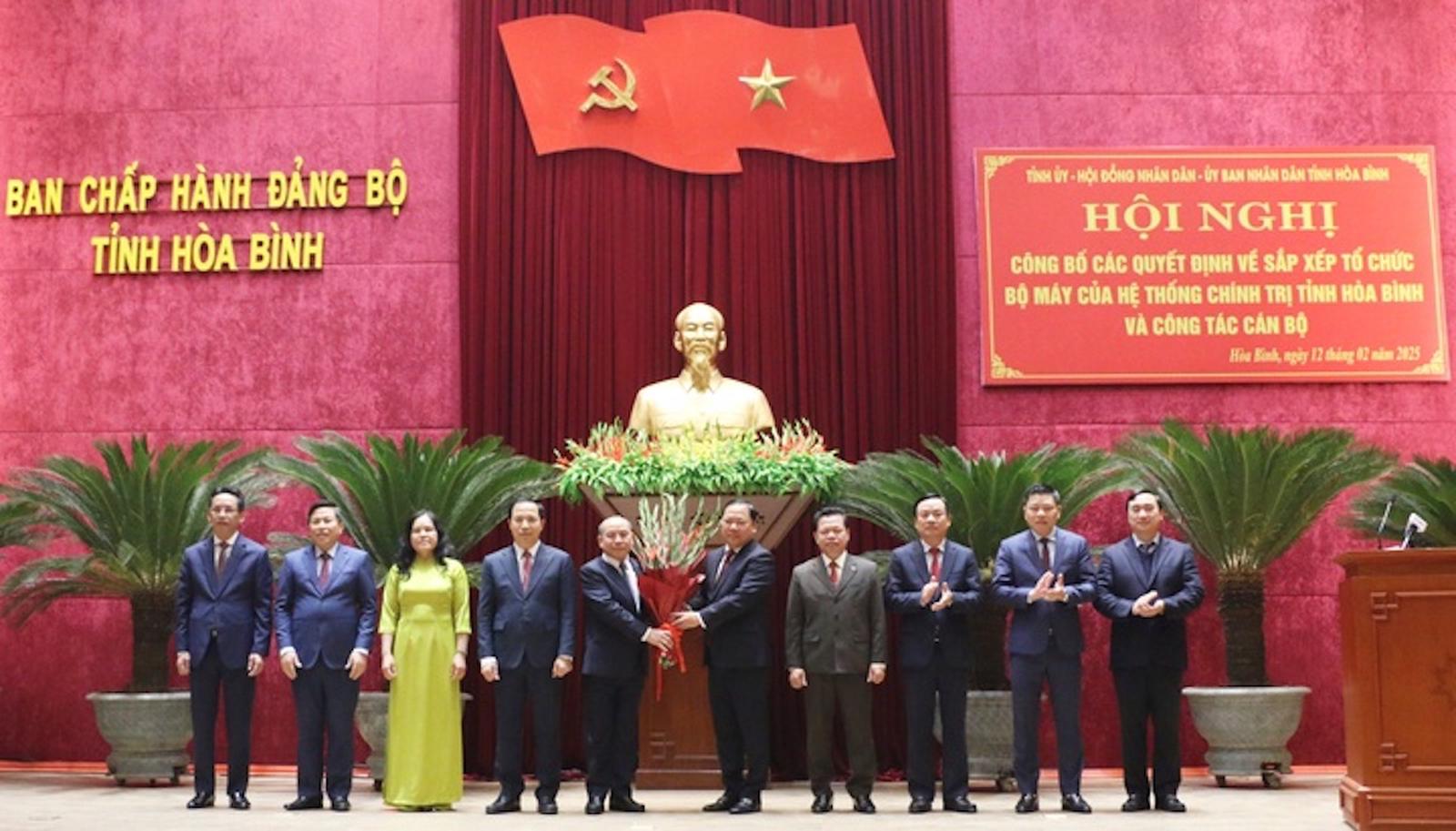 (Thanh tra) - Ngày 12/2/2025, Ban Thường vụ Tỉnh ủy Hoà Bình tổ chức hội nghị công bố các quyết định về sắp xếp tổ chức bộ máy của hệ thống chính trị tỉnh và công tác cán bộ.