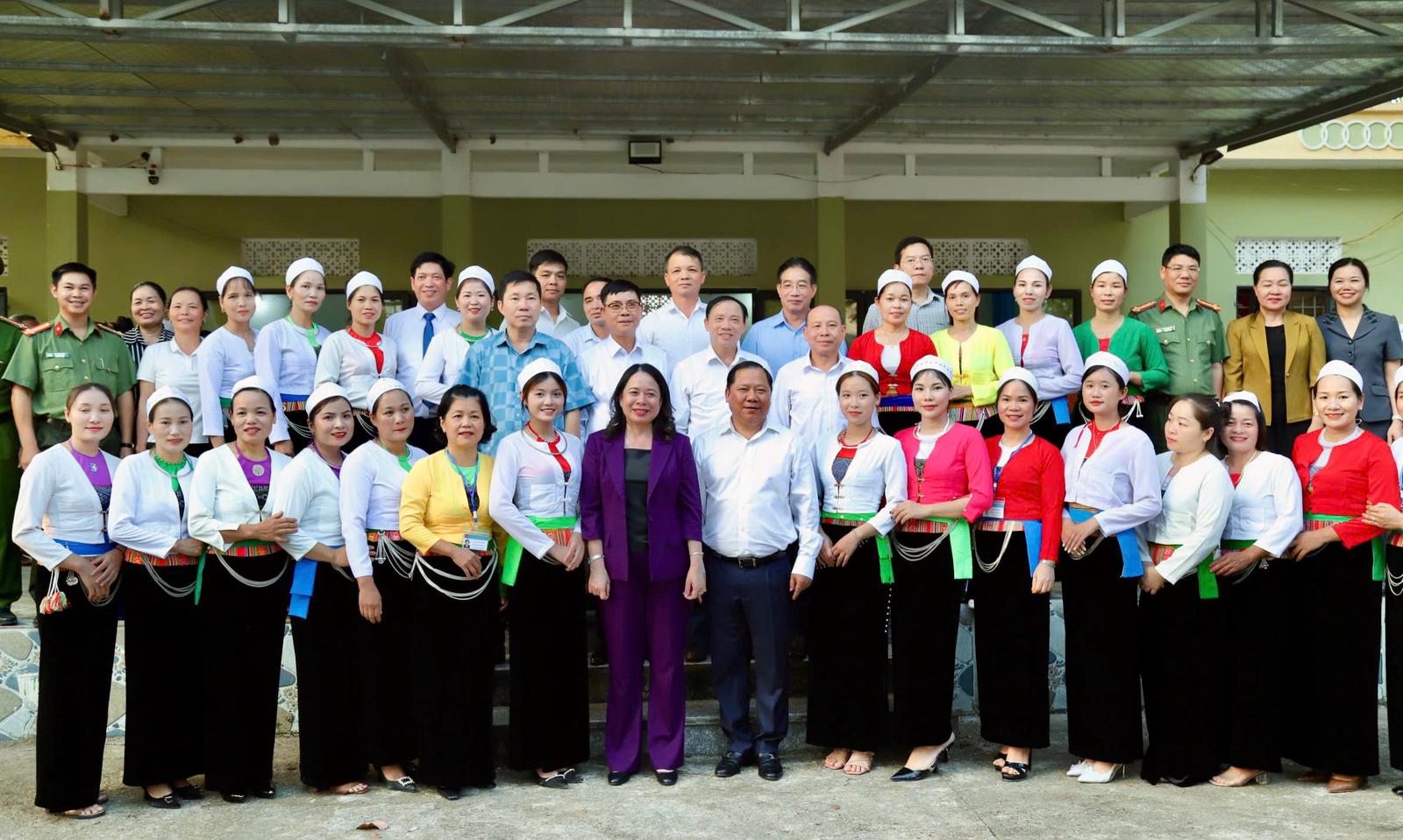 Phó Chủ tịch nước Võ Thị Ánh Xuân thăm và tặng quà người có uy tín, gia đình chính sách xã Vĩnh Đồng. Ảnh:TK