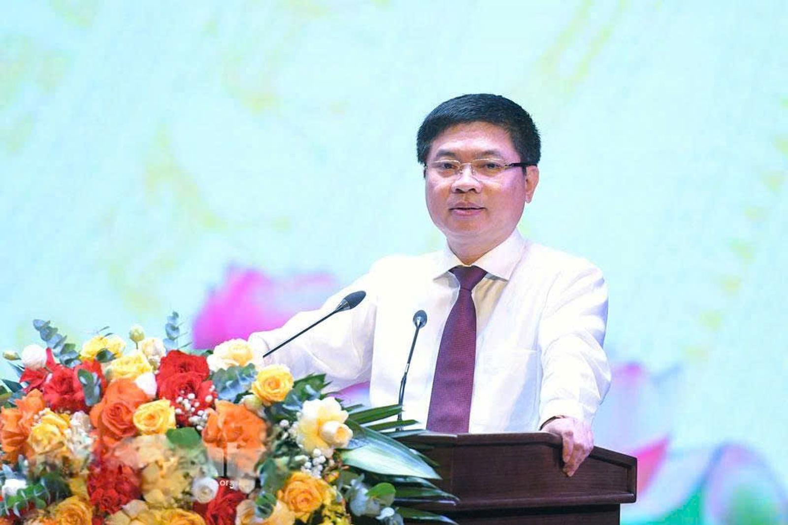 Bí thư Tỉnh ủy, Trưởng Đoàn đại biểu Quốc hội tỉnh Ninh Bình Trương Quốc Huy phát biểu tại hội nghị. Ảnh: Báo Ninh Bình