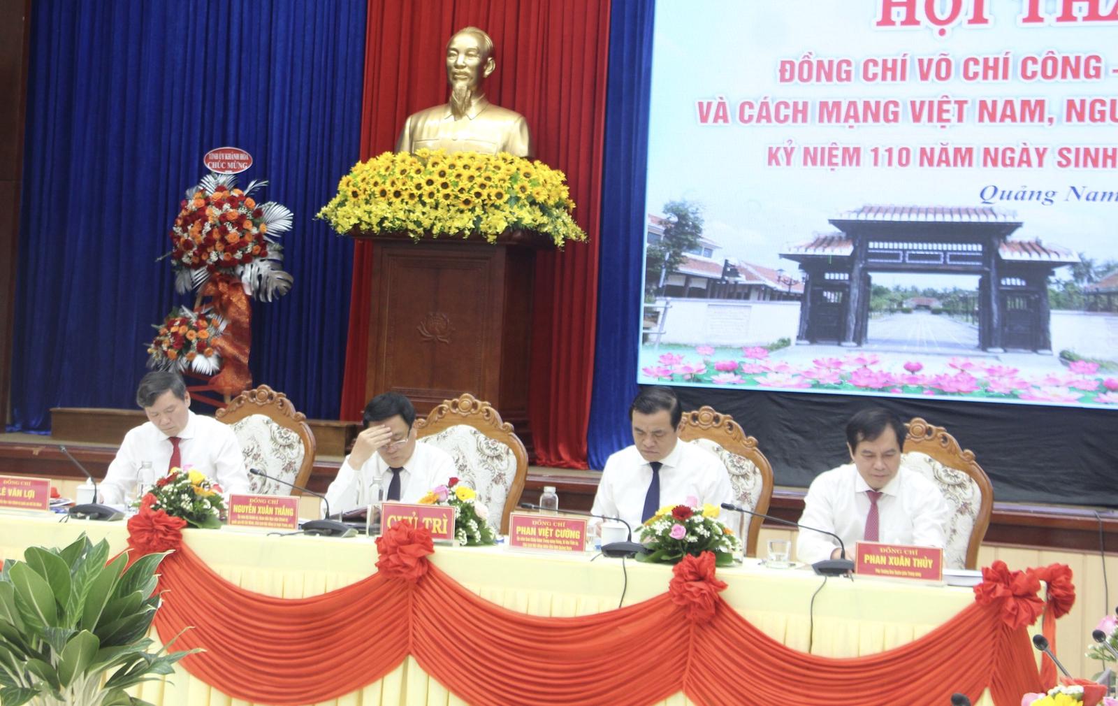 Ông Phan Việt Cường, Bí thư Tỉnh uỷ Quảng Nam bày tỏ, hội thảo hôm nay có ý nghĩa quan trọng đối với tỉnh Quảng Nam nói riêng và cả nước nói chung. Thông qua các bài tham luận tại hội thảo này sẽ làm rõ hơn về cuộc đời, sự nghiệp, tôn vinh những cốn hiến to lớn của nguyên Chủ tịch Hội đồng Nhà nước Võ Chí Công đối với sự nghiệp cách mạng của Đảng, dân tộc; đồng thời làm sáng tỏ hơn tấm gương đạo đức sáng ngời của đồng chí Võ Chí Công.