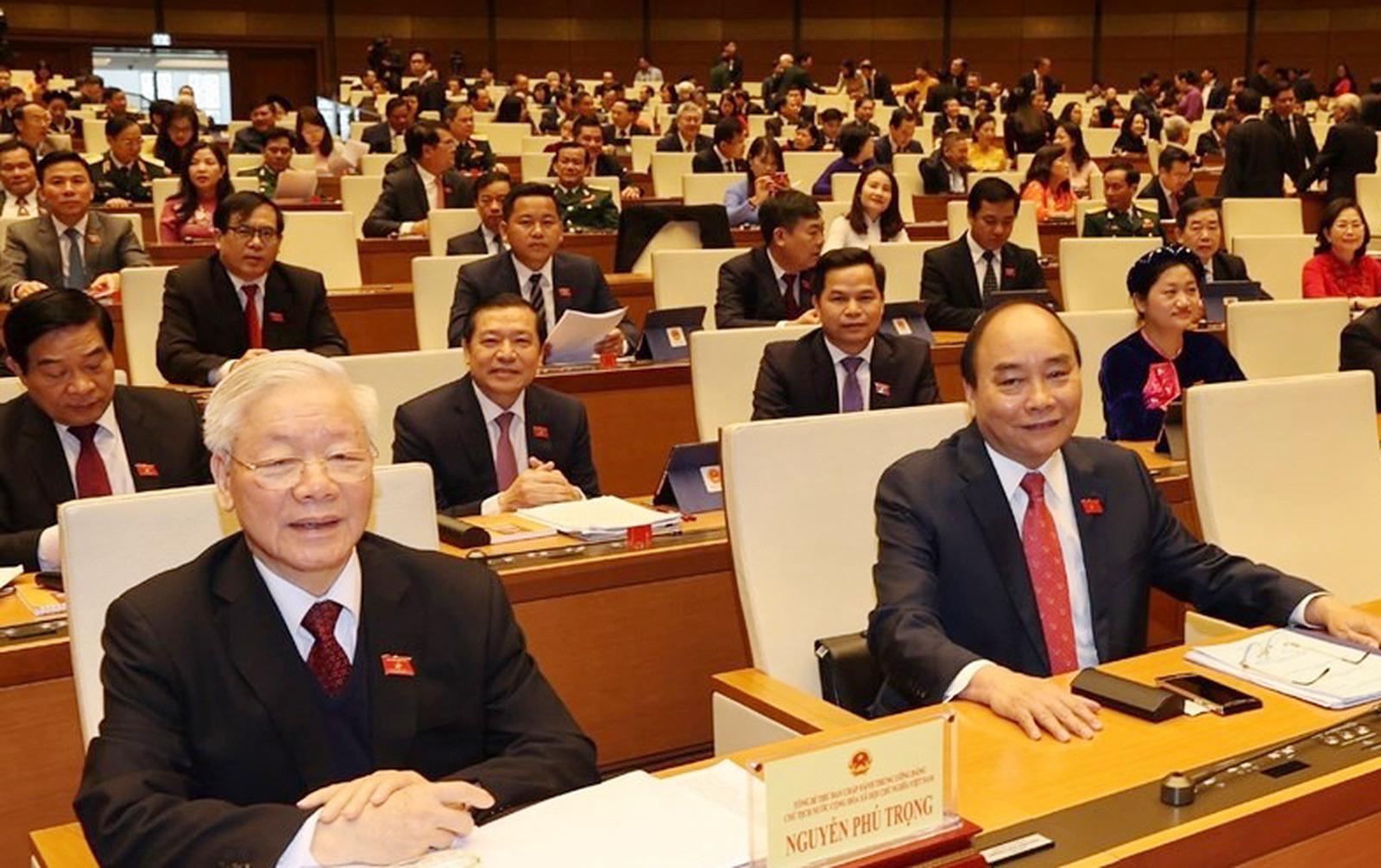 Tổng Bí thư, Chủ tịch nước Nguyễn Phú Trọng và Thủ tướng Chính phủ Nguyễn Xuân Phúc tại kỳ họp 11, Quốc hội khoá XIV. Ảnh: Đ.X