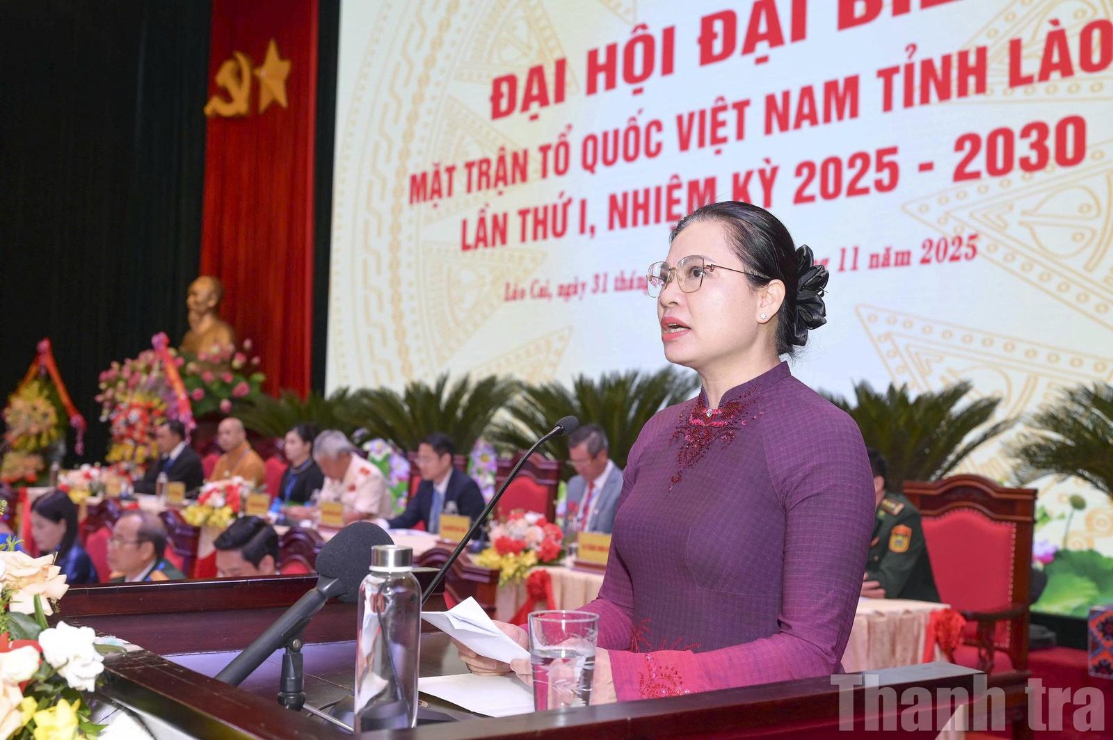 Phát biểu khai mạc Đại hội, bà Giàng Thị Dung, Phó Bí thư Tỉnh ủy, Chủ tịch Ủy ban MTTQ Việt Nam tỉnh Lào Cai nhấn mạnh: “Đại hội là dịp để Mặt trận các cấp nhìn lại chặng đường đã qua, đánh giá kết quả đạt được, đồng thời xác định phương hướng, mục tiêu, nhiệm vụ trong giai đoạn mới.