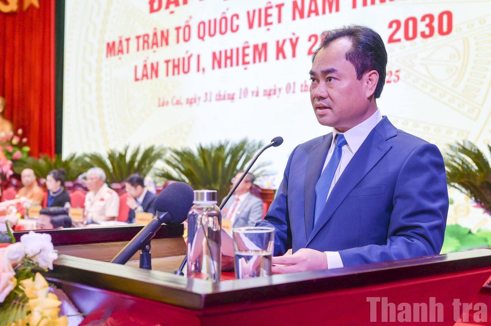 Phát biểu chỉ đạo, ông Trịnh Việt Hùng, Bí thư Tỉnh ủy Lào Cai khẳng định: “Trong mọi phong trào thi đua, mọi chương trình hành động cách mạng, ở bất cứ lĩnh vực nào, đều có dấu ấn và đóng góp tích cực của Mặt trận và các tổ chức thành viên. MTTQ Lào Cai thực sự là ngọn cờ đoàn kết, tập hợp ý chí, niềm tin và khát vọng vươn lên của Nhân dân”.