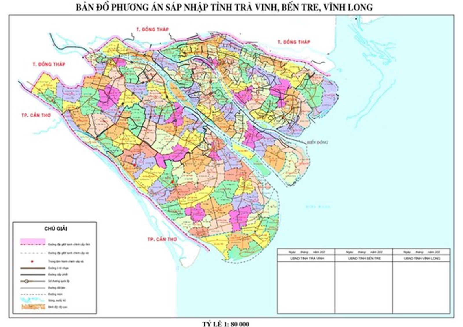 Bản đồ phương án sáp nhập 3 tỉnh Vĩnh Long, Trà Vinh và Bến Tre