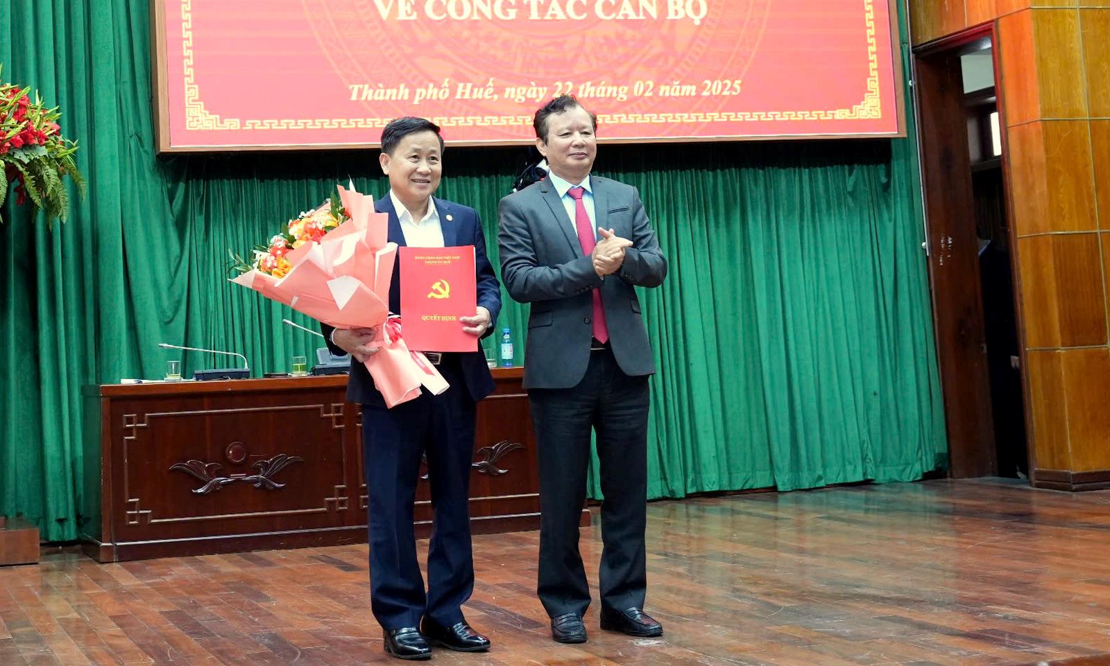 Hội nghị cũng công bố các quyết định về điều động và bổ nhiệm nhân sự: Trong đó, ông Hồ Xuân Trăng, Trưởng Ban Dân tộc thành phố Huế, nhận nhiệm vụ tại Ban Tuyên giáo và Dân vận Thành ủy, giữ chức vụ Phó Trưởng ban; ông Hồ Thắng, Giám đốc Sở Khoa học và Công nghệ, nhận nhiệm vụ tại Ban Tuyên giáo và Dân vận Thành ủy, giữ chức vụ Phó Trưởng ban.