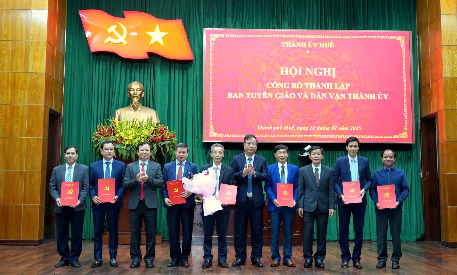 Công bố quyết định hợp nhất Ban Tuyên giáo và Dân vận Thành ủy Huế và công tác nhân sự tại Ban. Ảnh: Minh Tân