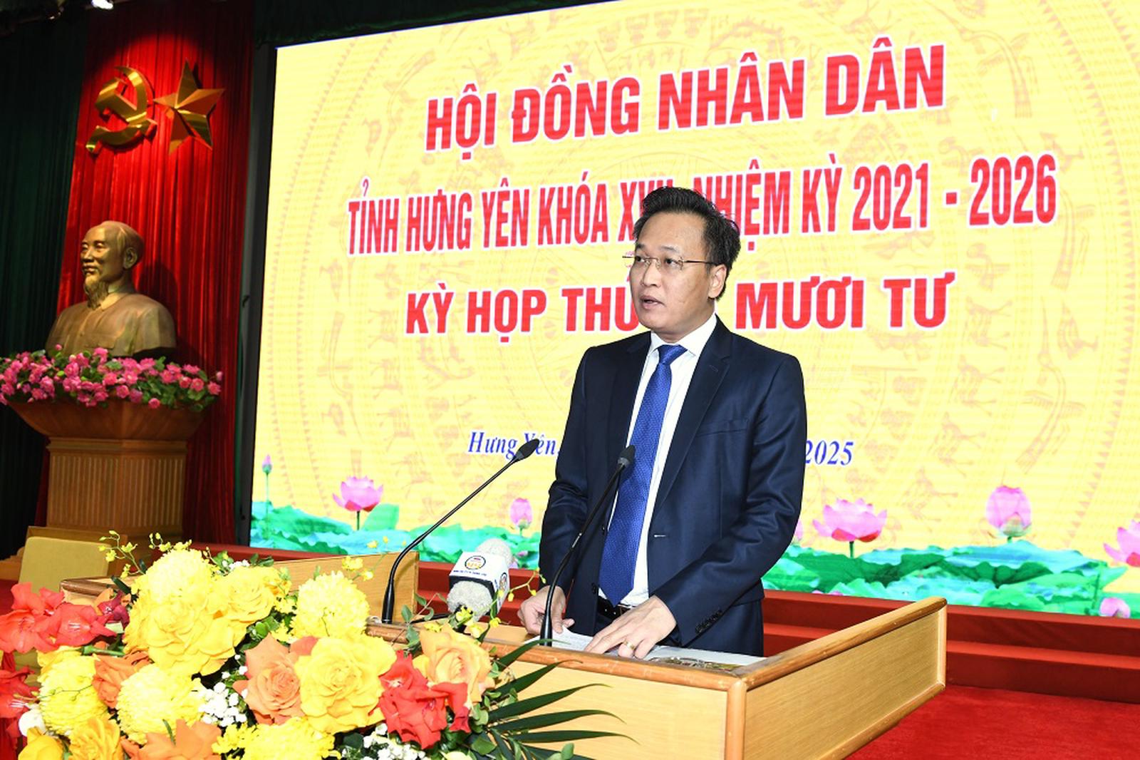 Phó Bí thư Tỉnh ủy, Chủ tịch UBND tỉnh Hưng Yên Phạm Quang Ngọc phát biểu tại kỳ họp. Ảnh: Tất Đạt