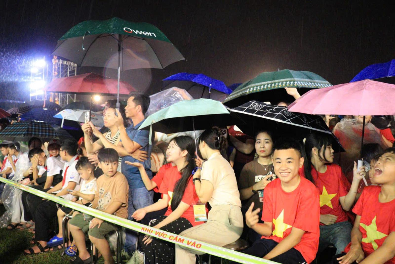 Hàng nghìn người dân Yên Bái đội mưa theo dõi sự kiện. Ảnh: Bùi Bình