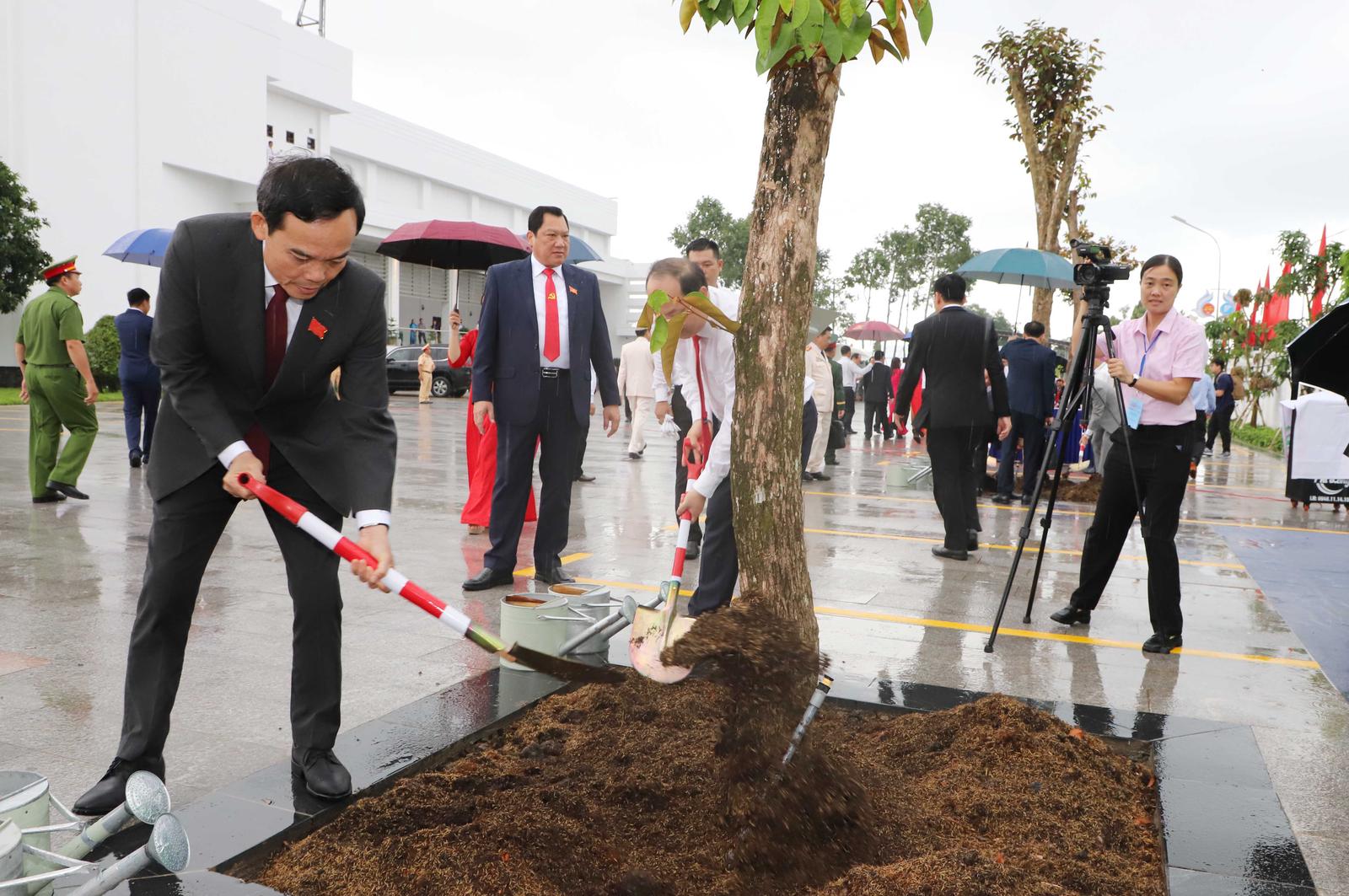 Bí thư Trung ương Đảng, Bí thư Thành ủy Thành phố Hồ Chí Minh Trần Lưu Quang trồng cây lưu niệm tại Trung tâm Hội nghị tỉnh. Ảnh: BTC Đại hội
