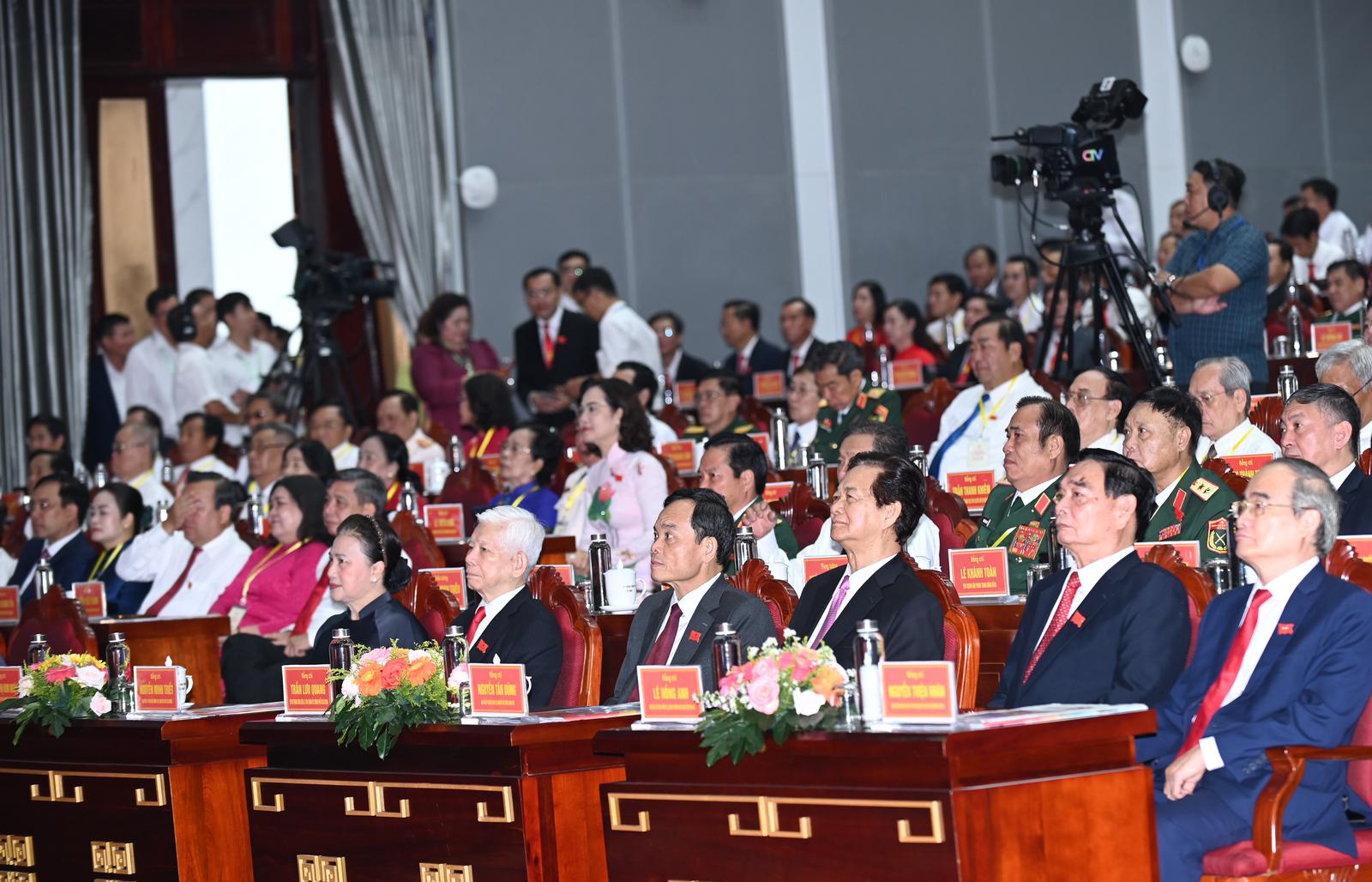 Về dự Đại hội có các đồng chí lãnh đạo, nguyên lãnh đạo Đảng, Nhà nước, Mặt trận Tổ quốc Việt Nam; các đồng chí lãnh đạo các ban, bộ, ngành, đoàn thể Trung ương... Ảnh: BTC Đại hội