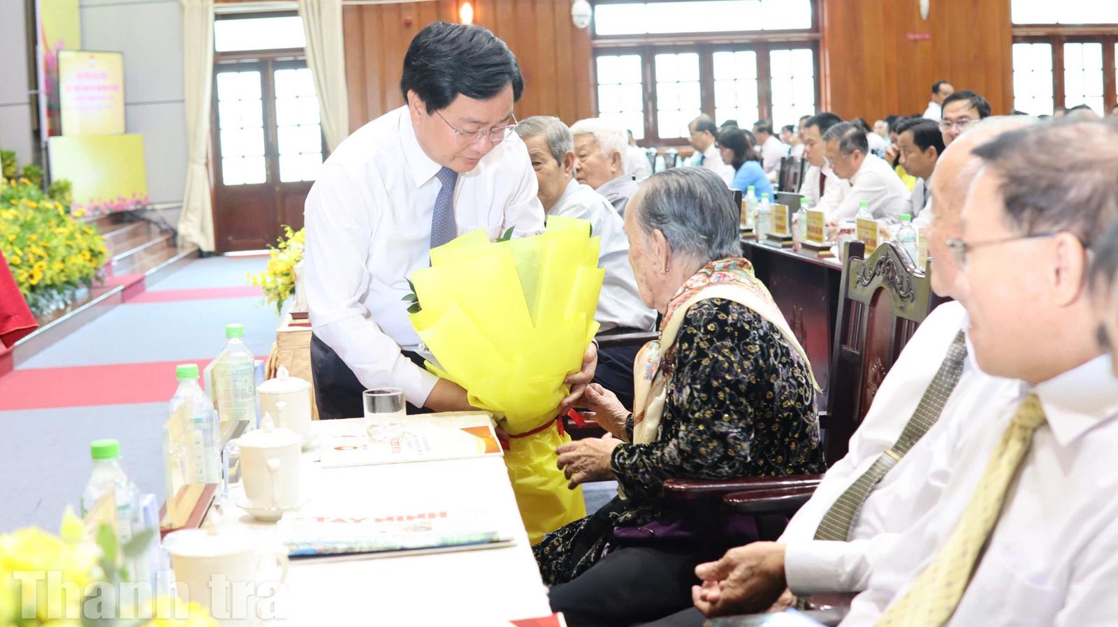 Bí thư Tỉnh uỷ Nguyễn Văn Quyết tặng hoa cho Mẹ Việt Nam anh hùng