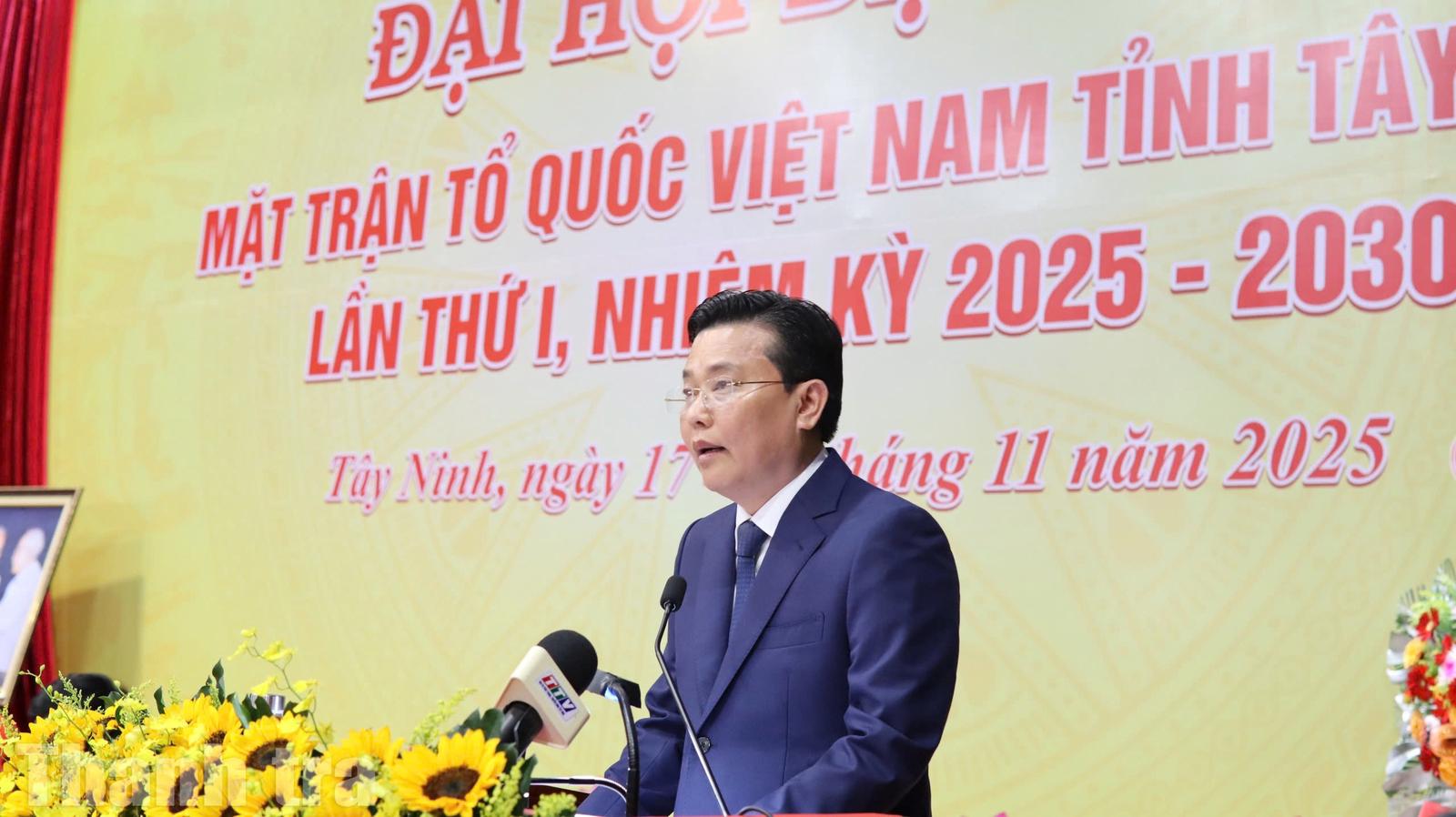 Phát biểu khai mạc, ông Nguyễn Thanh Hải, Phó Bí thư Tỉnh ủy, Chủ tịch Ủy ban MTTQ Việt Nam tỉnh Tây Ninh nhấn mạnh: Đại hội lần thứ I mang ý nghĩa đặc biệt khi hệ thống Mặt trận tỉnh bước vào nhiệm kỳ mới trong bối cảnh Tây Ninh đang tập trung triển khai nhiều mục tiêu phát triển sau hợp nhất đơn vị hành chính và thực hiện các nhiệm vụ theo Nghị quyết Đại hội Đảng bộ tỉnh nhiệm kỳ 2025–2030. Đại hội được xem là cơ hội để đánh giá toàn diện kết quả công tác mặt trận thời gian qua, đồng thời xác định rõ phương hướng, nhiệm vụ trọng tâm trong nhiệm kỳ mới nhằm củng cố khối đại đoàn kết toàn dân và huy động Nhân dân tham gia xây dựng chính quyền, phát triển tỉnh nhà.
