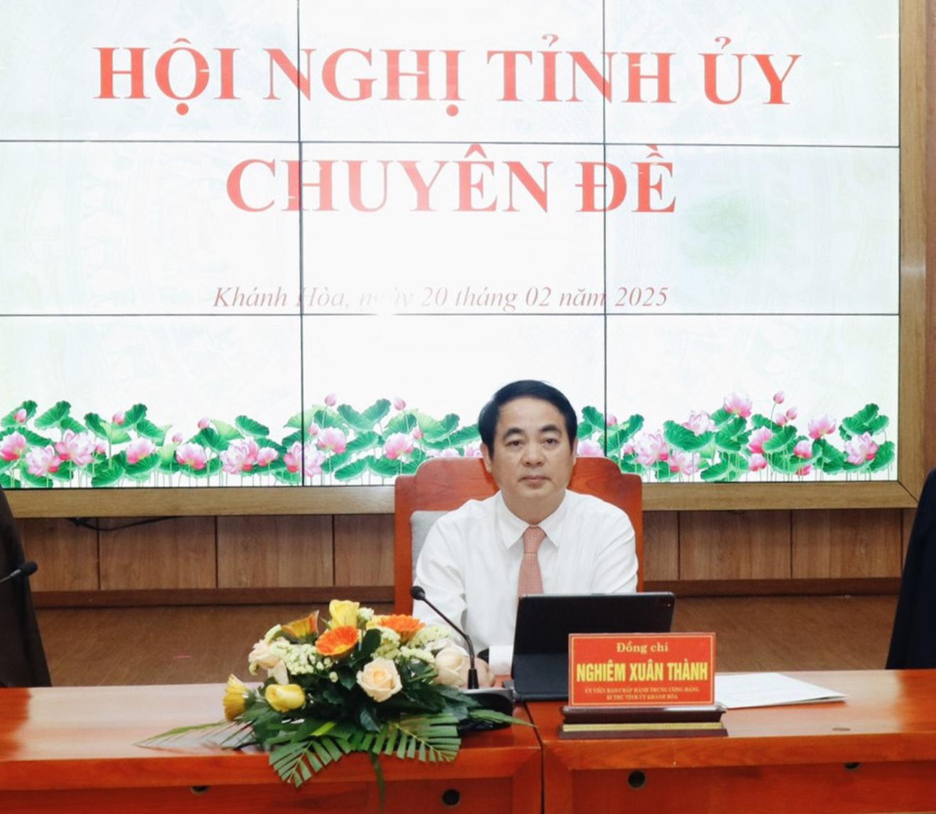 (Thanh tra) - Chiều nay (20/2), Tỉnh ủy Khánh Hòa tổ chức hội nghị chuyên đề về triển khai thực hiện Nghị quyết số 57; quán triệt Kết luận số 107-KL/TW của Bộ Chính trị về tiếp tục tăng cường sự lãnh đạo của Đảng đối với công tác tiếp công dân, giải quyết khiếu nại, tố cáo, kiến nghị, phản ánh. Ông Nghiêm Xuân Thành, Bí thư Tỉnh ủy, chủ trì hội nghị.