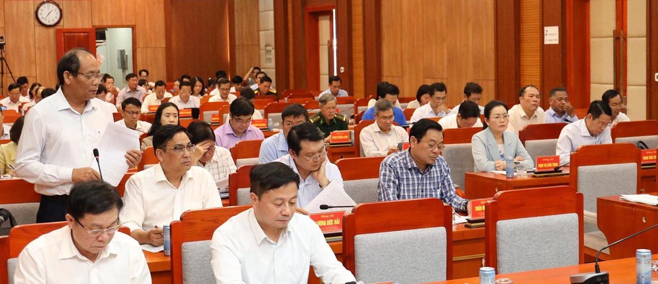 Các đại biểu tham dự Hội nghị Tỉnh ủy Khánh Hòa lần thứ 22 quan tâm đặc biệt về sắp xếp bộ máy. Ảnh: TL