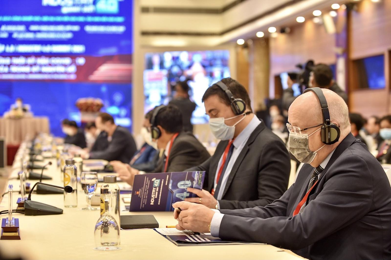 Xu thế mới sau đại dịch COVID-19 Diễn đàn với sự tham gia của 200 đại biểu trực tiếp ở điểm cầu Hà Nội cùng hơn 2.000 đại biểu ở các điểm cầu trong và ngoài nước. Trong phiên toàn thể, các đại biểu trong và ngoài nước đã thảo luận, góp ý đối với khung chính sách phục hồi và phát triển kinh tế - xã hội của Việt Nam gắn với phòng, chống dịch COVID-19 giai đoạn 2021-2023. Các đại biểu tham dự Diễn đàn. Ảnh: N.Bắc Chia sẻ kinh nghiệm từ Hàn Quốc, ông Yong Hongtaek, Thứ trưởng Bộ Khoa học và Công nghệ Thông tin truyền thông Hàn Quốc nêu ba điều cần thiết để phục hồi, tăng trưởng kinh tế sau COVID-19. Đầu tiên là tăng cường đổi mới sáng tạo, khoa học công nghệ. Thứ hai, là chuẩn bị cho quá trình chuyển đổi số, đặc biệt mô hình làm việc từ xa, làm tiền đề cho sự phát triển của sáng tạo, đổi mới công nghệ, AI, dữ liệu lớn. Thứ 3 là, xây dựng các cụm đổi mới sáng tạo - nơi quy tụ hàng trăm trung tâm nghiên cứu, các trường đại học, 5.000 công ty và 60.000 nhà khoa học với quy mô vốn hỗ trợ lên tới 1.000 tỉ won. “Tôi muốn nhấn mạnh rằng ba chính sách trên gắn bó hữu cơ và cần được kết nối với nhau trong mối quan hệ tương hỗ”, ông Yong Hongtaek nói.