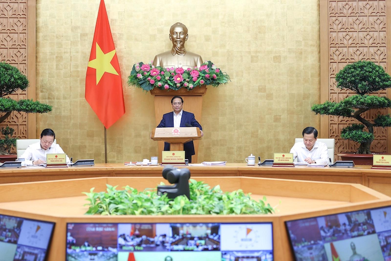 Thủ tướng Phạm Minh Chính chủ trì phiên họp Chính phủ thường kỳ tháng 5. Phiên họp được kết nối trực tuyến tới trụ sở UBND các tỉnh, TP trực thuộc Trung ương. Ảnh: N.Bắc