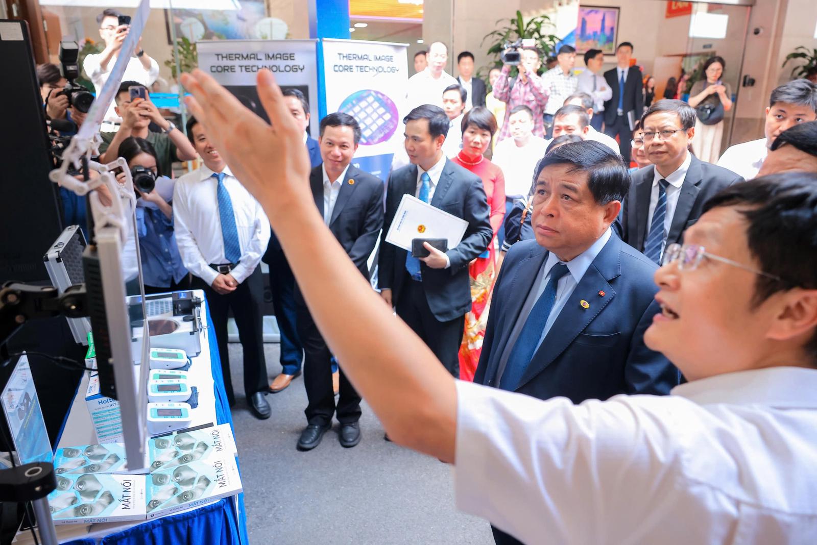 Phó Thủ tướng Nguyễn Chí Dũng tham quan triển lãm trưng bày kết quả KHCN, ĐMST và CĐS của các khối doanh nghiệp khởi nghiệp, viện, trường. Ảnh: M.H