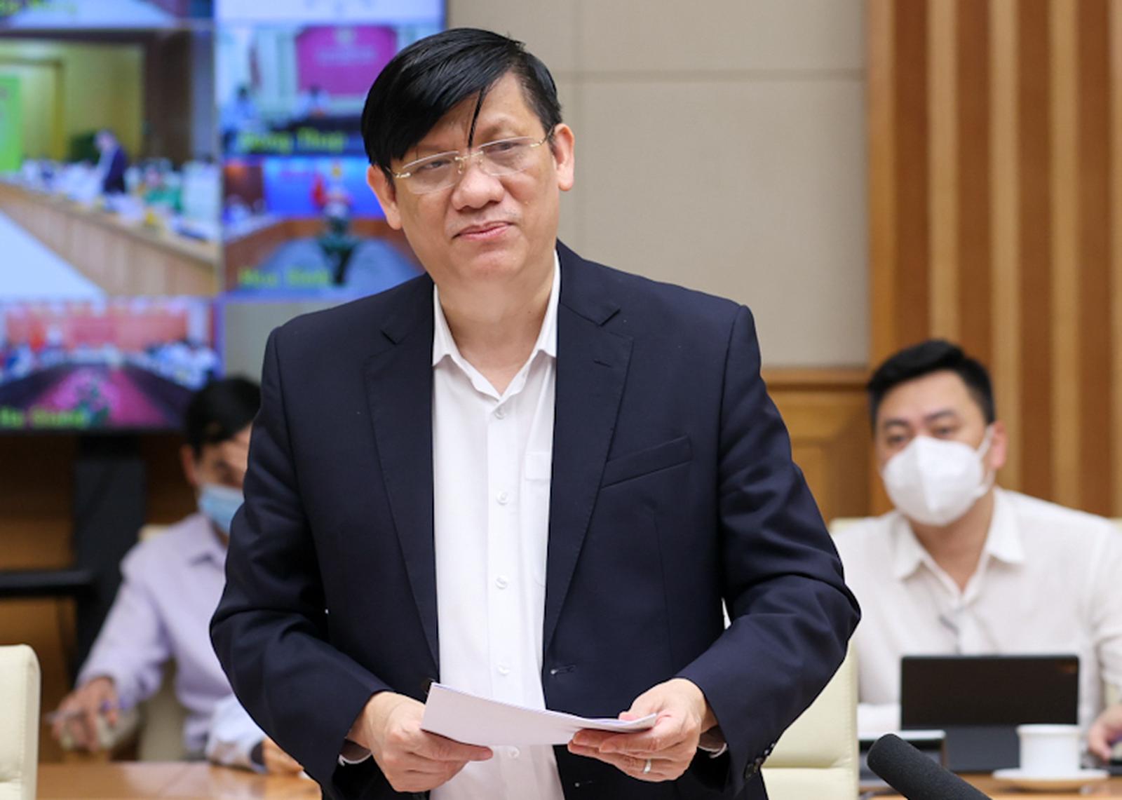 Bộ trưởng Bộ Y tế Nguyễn Thanh Long báo cáo tại phiên họp Ban Chỉ đạo quốc gia về phòng chống dịch COIVD -19. Ảnh: Đ.X